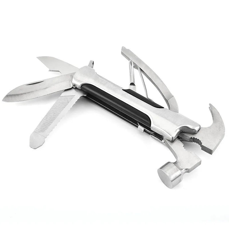 15-in-1 Multifunctional Survival Hammer Tool - Stainless Steel Folding Knife, Pliers, Camping & Hiking Gear for Outdoor Adventur