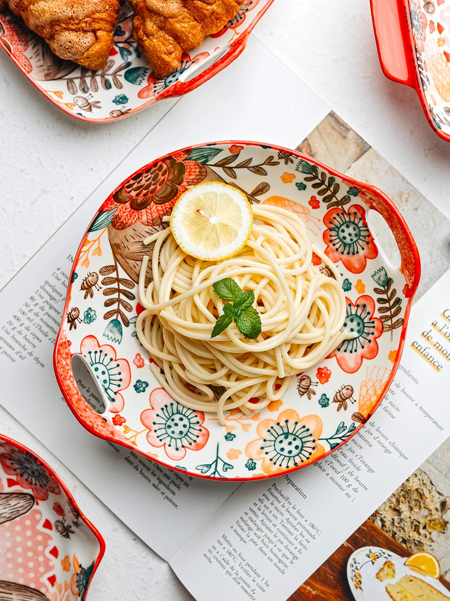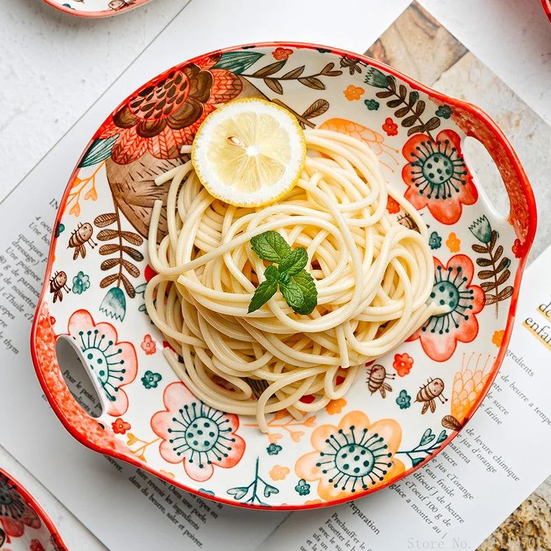 1pc/cute rabbit hand-painted bowl and plate underglaze ceramic household soup bowl commercial hotel noodle bowl fruit salad bowl