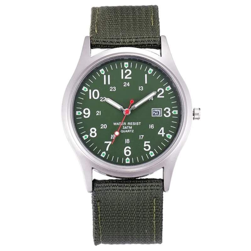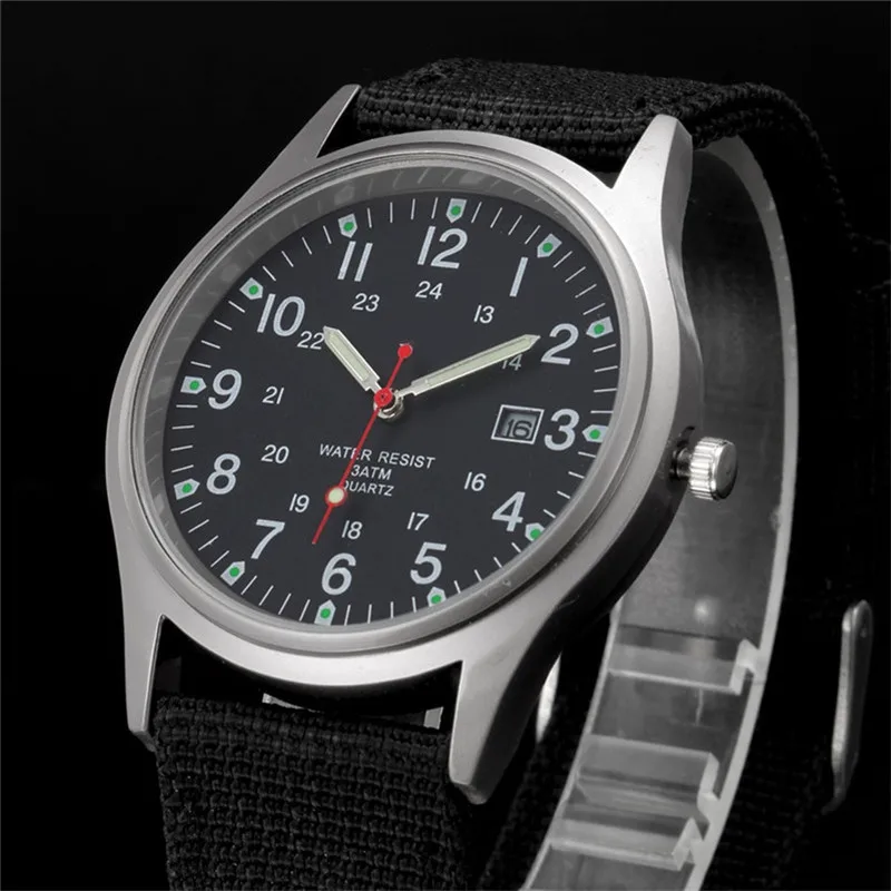 1pc / lot Cheap Watches For Men Fashion Nylon Band Military Army Sports Date Quartz Watch Erkek Barato Saat Reloj Hombre Black