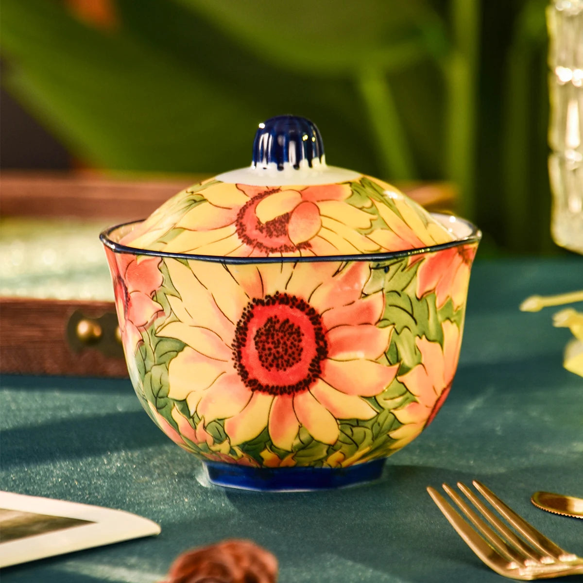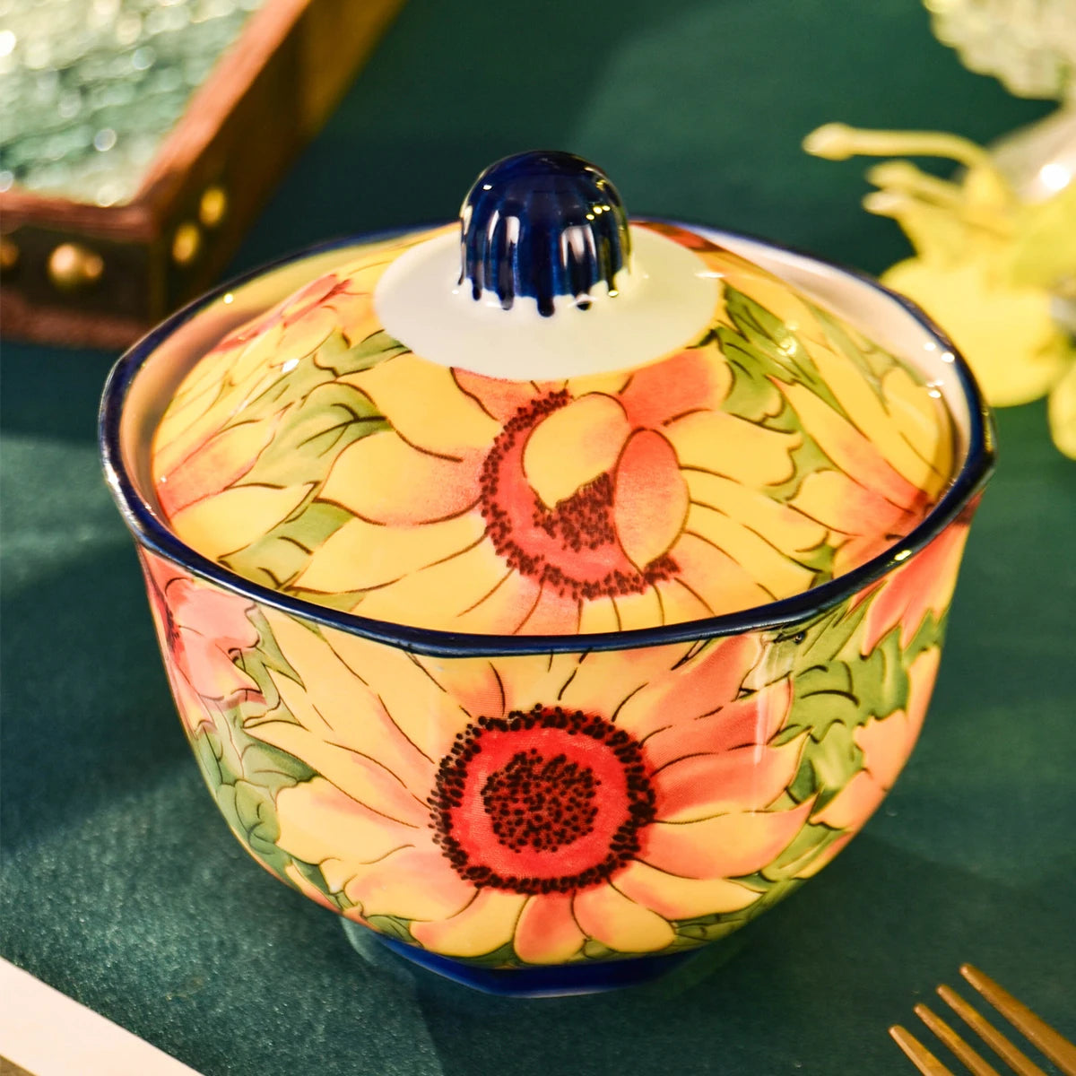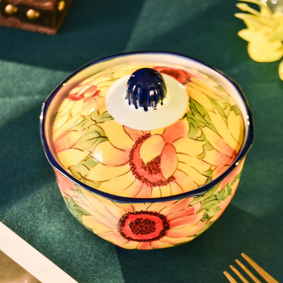 2/4 Sunflower Ceramic Baking Pans - 300ml Oven-Safe Stew Pot, with Inner and Outer Lids, Microwave-Safe, Leak-Proof Soup and Egg Steamer, Healthy Cooking