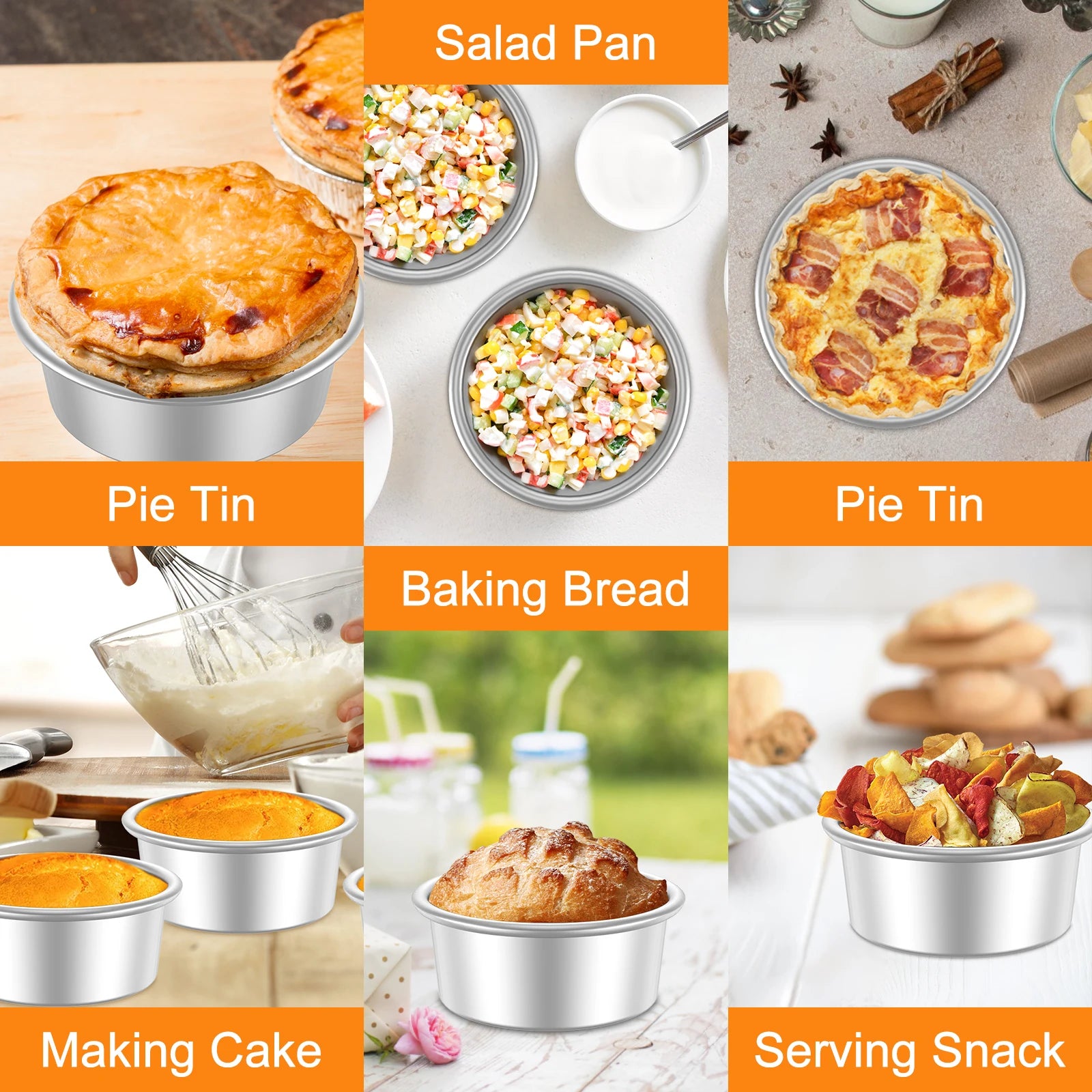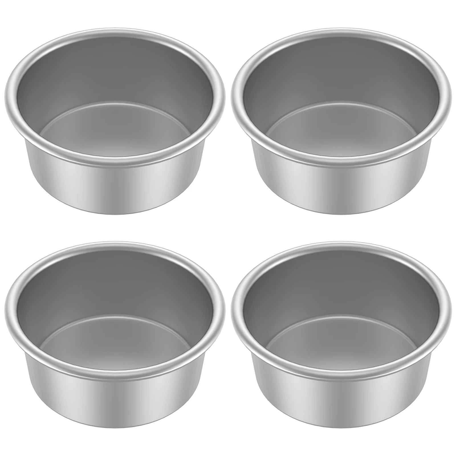 4/8Pcs Cake Bake Pan Non-Stick 4inch Round Cake Tin Stainless Steel Mold Pan Reusable Cake Bakeware Dishwasher Safe Baking Mold