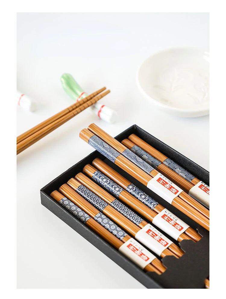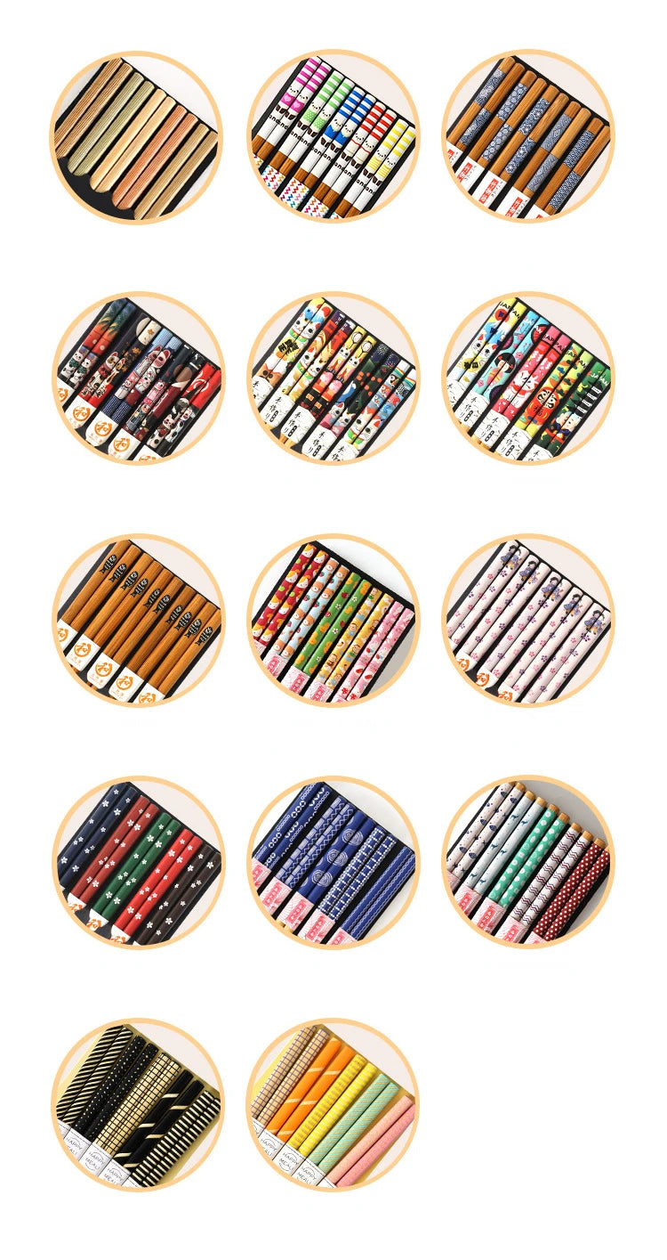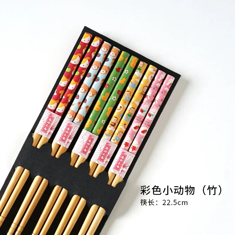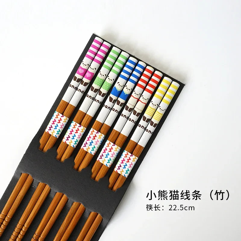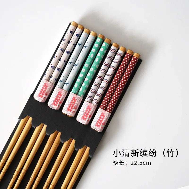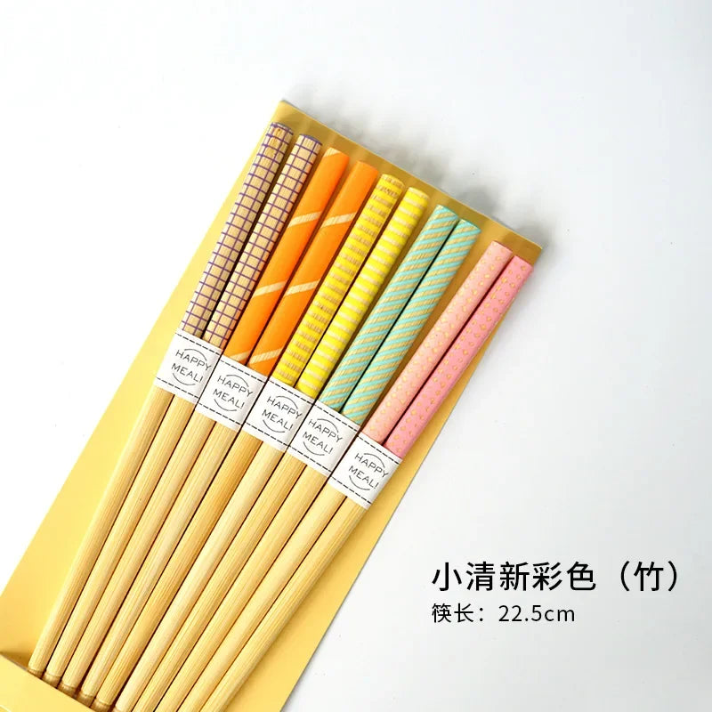 5 Pair of Bamboo Chopsticks Household Long Chopsticks Non-slip Set Tableware Cute Multi Color Wooden Chopsticks Set New 젓가락