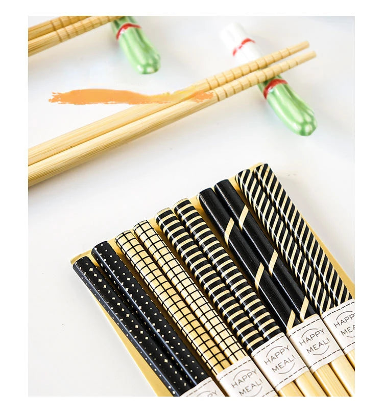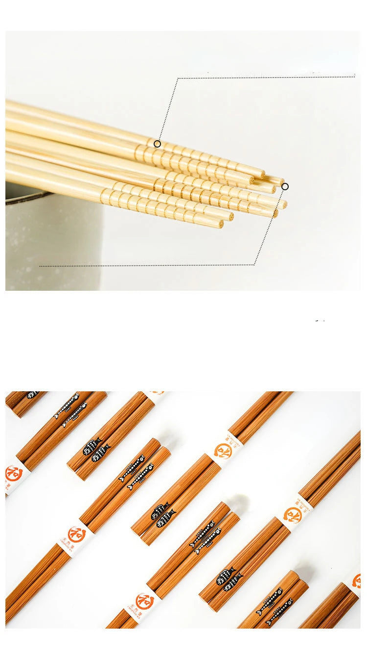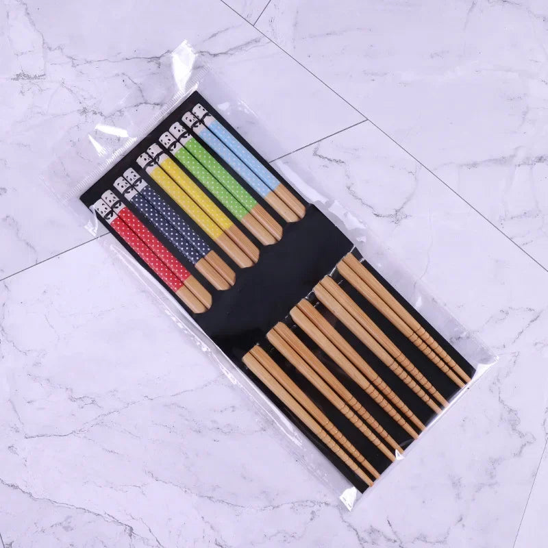 5 Pair of Bamboo Chopsticks Household Long Chopsticks Non-slip Set Tableware Cute Chopsticks Multi Color Wooden Chopsticks Set