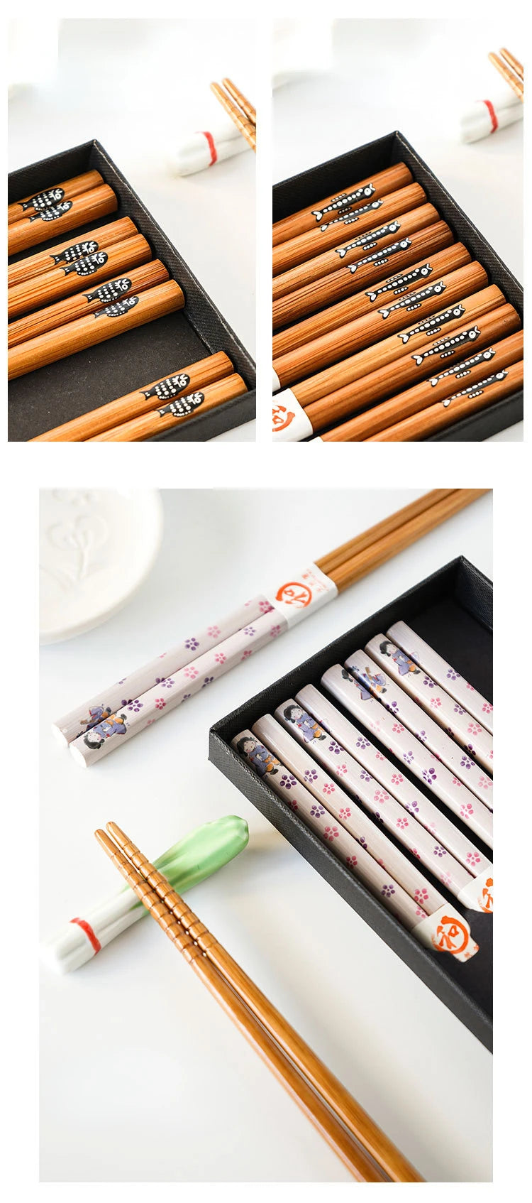 1.Non slip: These chopsticks are with anti-slip design. The reinforced non slip chopsticks tip makes the chopsticks easier to grab food and better anti-slip. The chopsticks with the textured body are easier to use and more comfortable when holding on hand. The chopsticks won't roll on the hand.