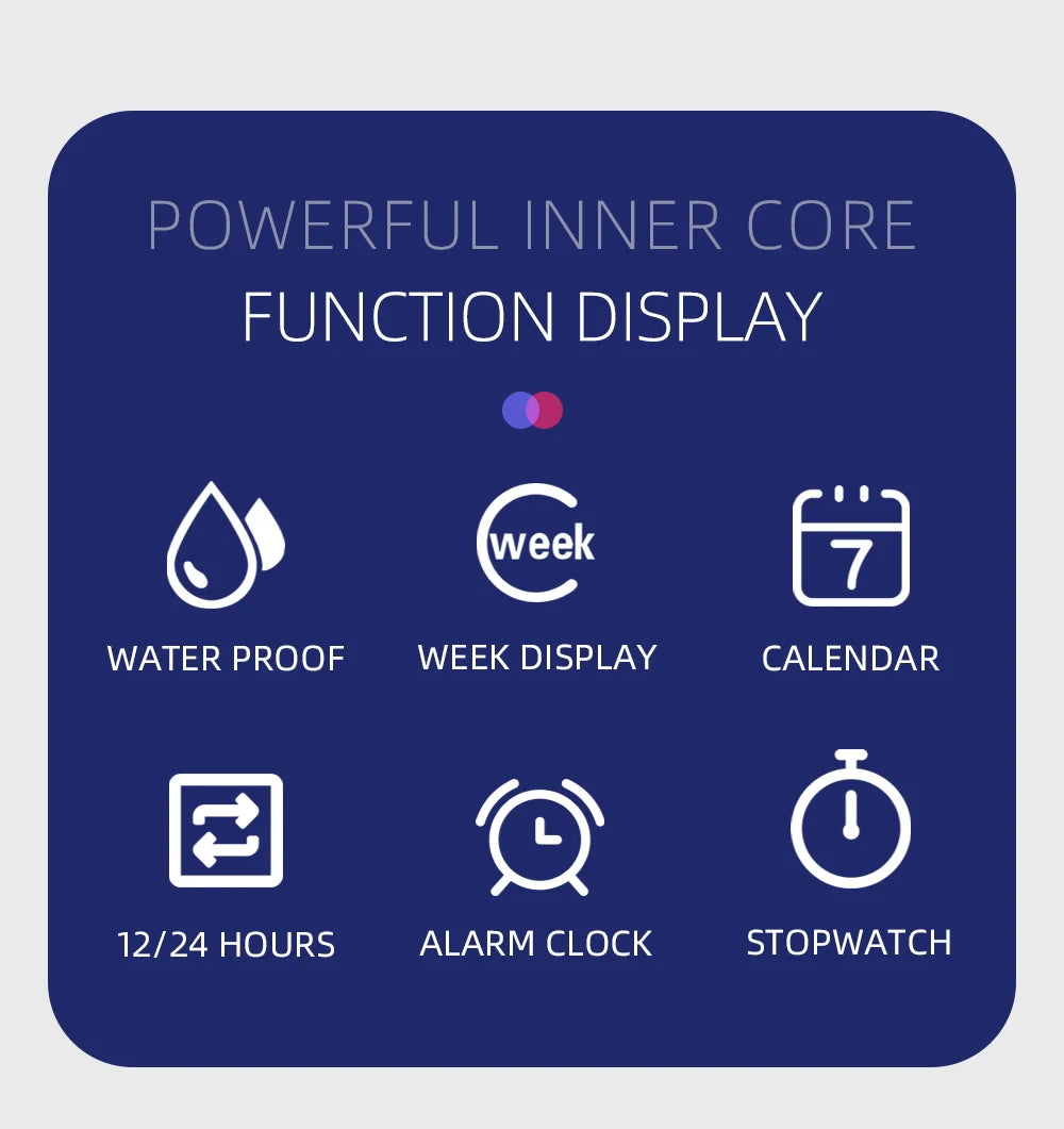 Features:Back Light,LED display,Repeater,Complete Calendar,Alarm,Week Display