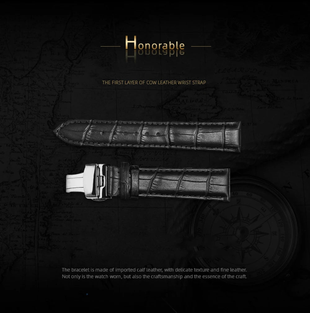 4.LEATHER STRAP: (1)Avoid touching with water and dampness to prevent discoloration and deformation.(2) Avoid prolonged exposure to sunlight to prevent the colour from fading.(3)Do not forget that leather is permeable! Therefore avoid contact with greasy substances and cosmetic products. It is not advisable to clean your strap with leather cleaners.