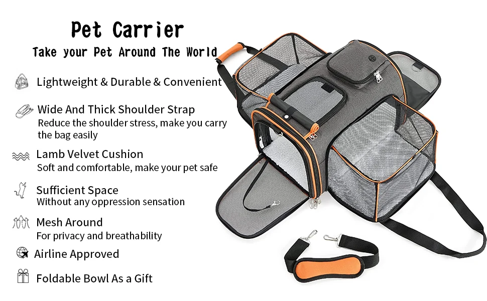 Airline Approved Expandable Pet Carrier, Large Reversible Expandable Dog and Cat Carrier - Essential Travel Bag for Outings