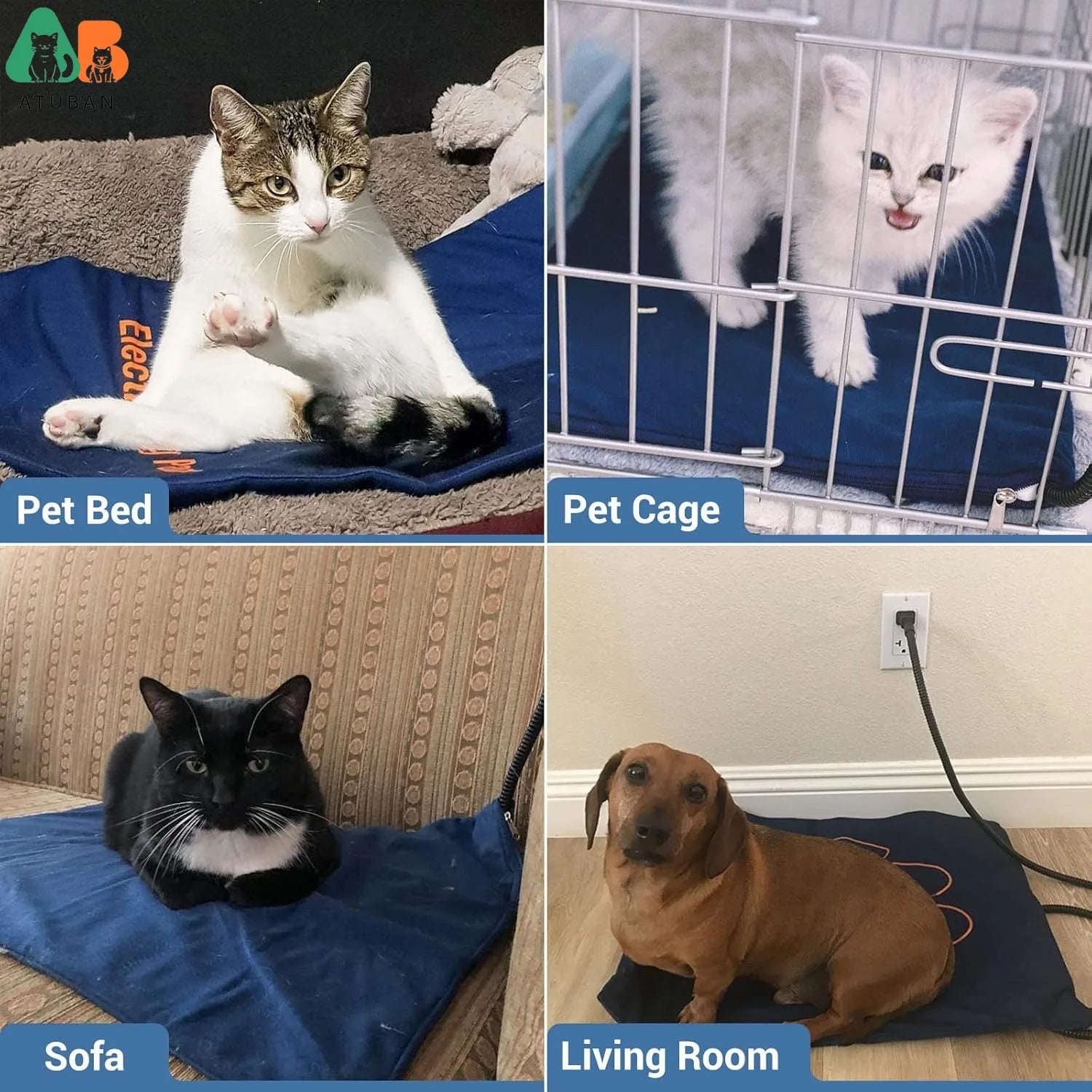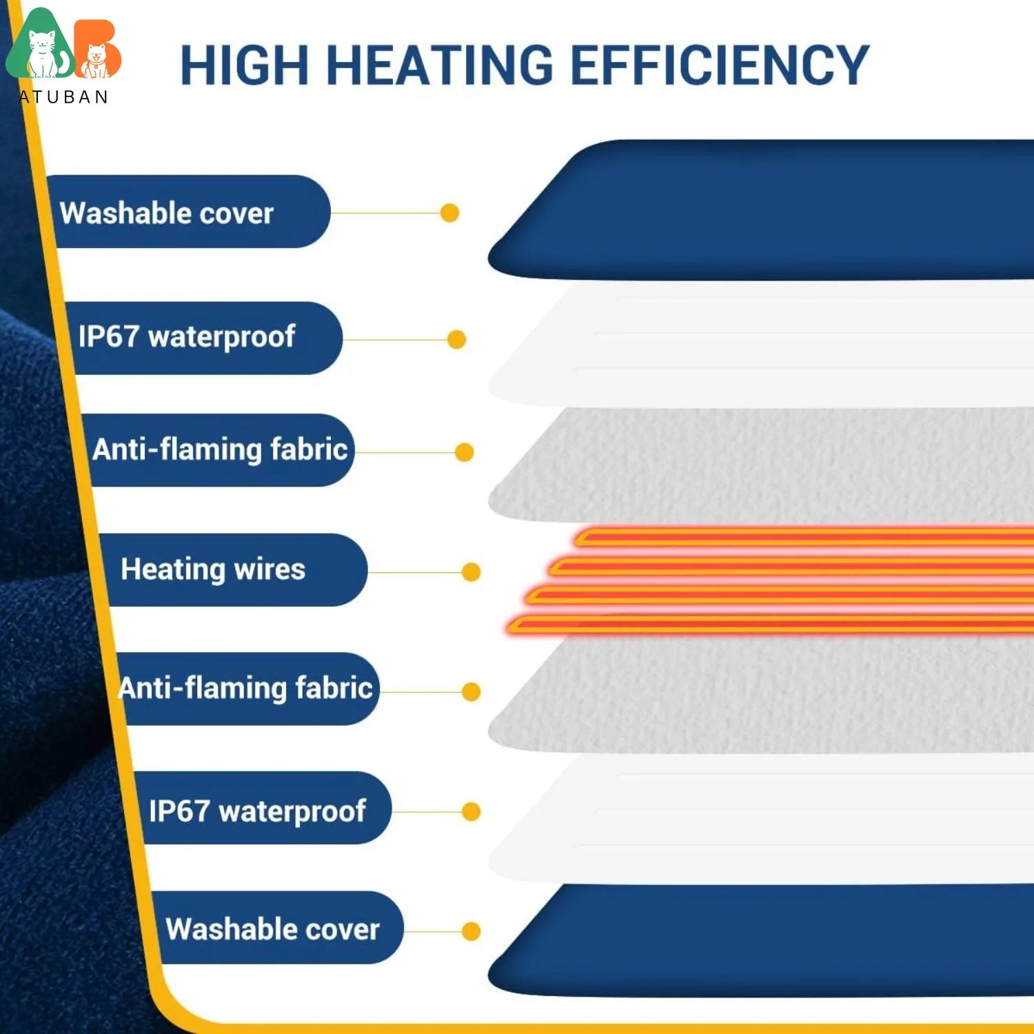 ATUBAN 7-Temp Heated Pet Bed - Chew-Resistant Warming Mat for Cats & Dogs