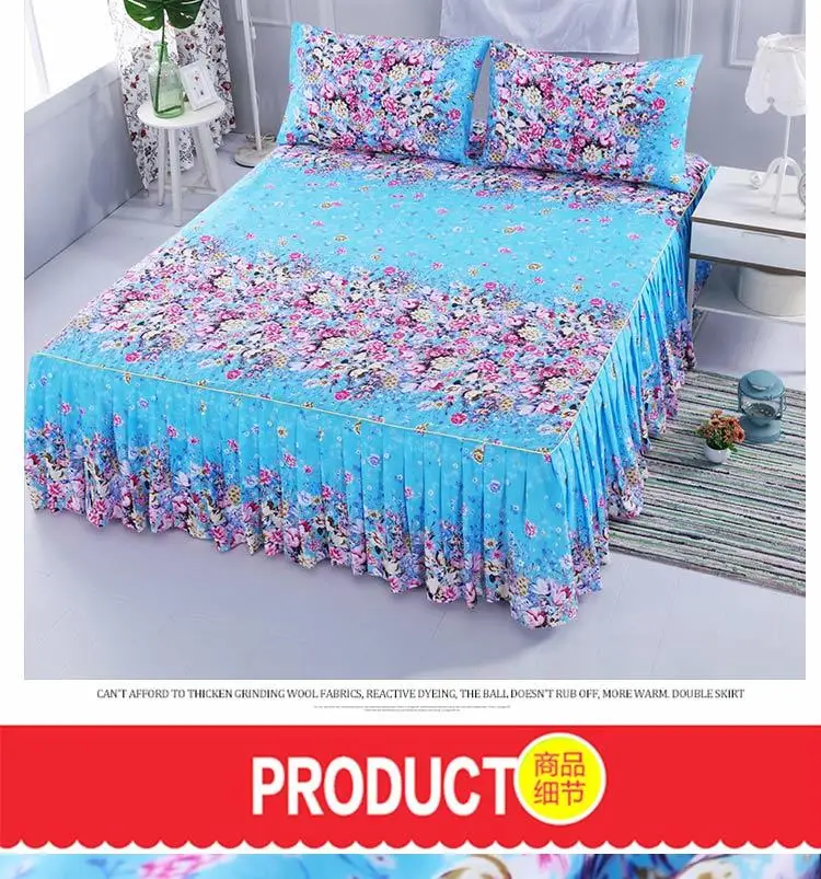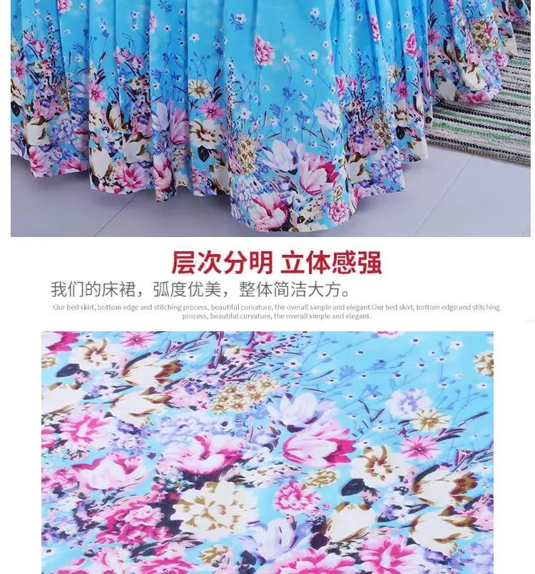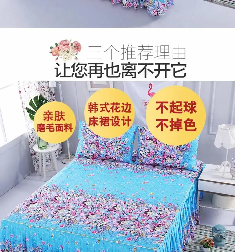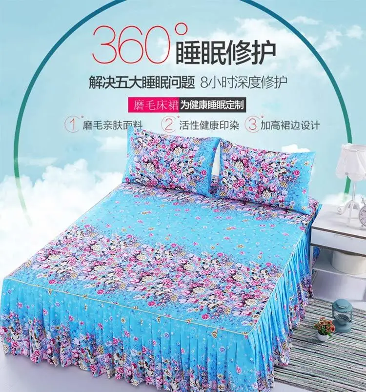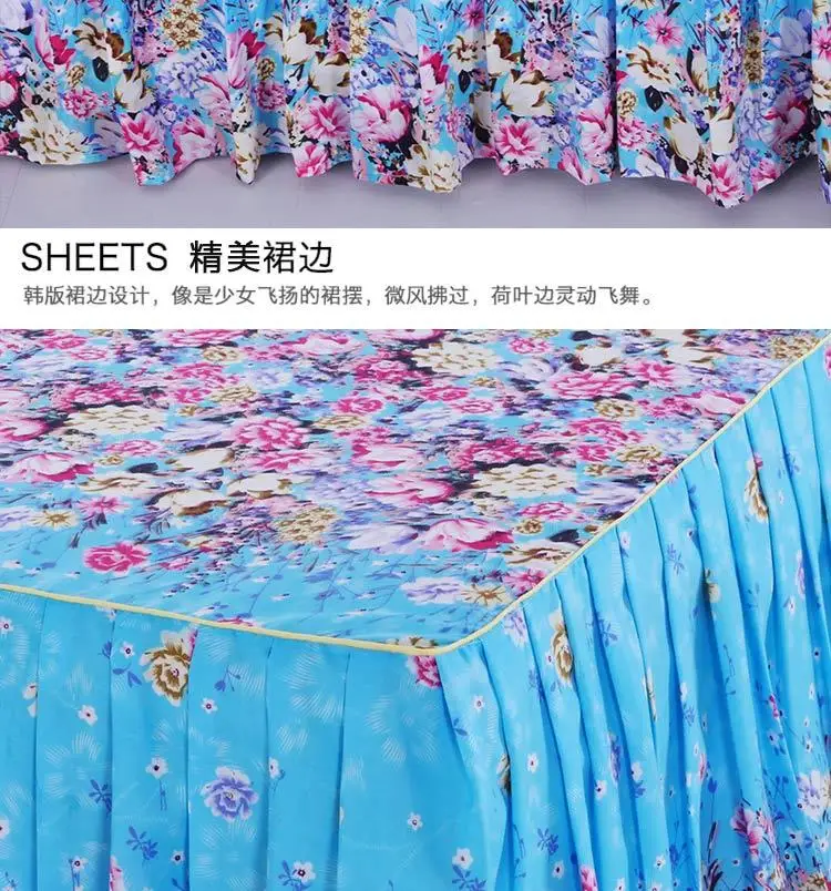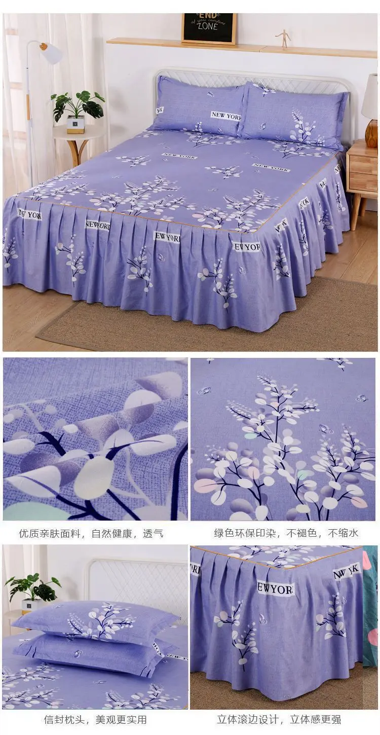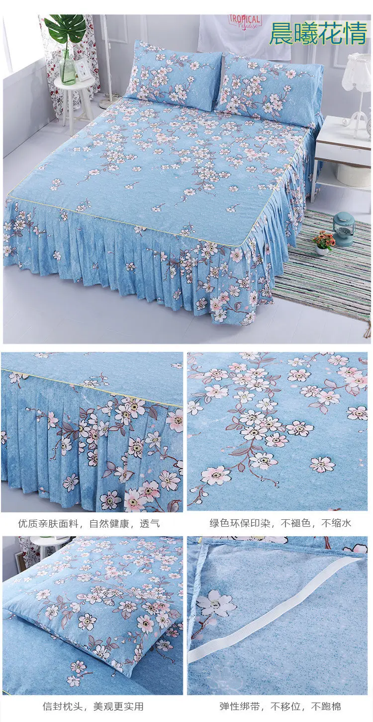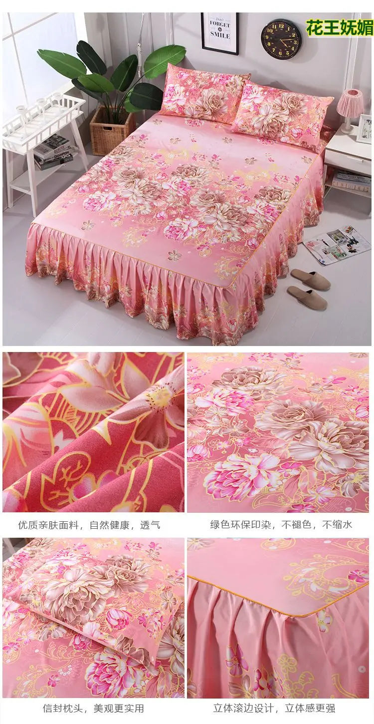Bed Sheet Set Flower Bedspread - Non-Slip Bed Dress Sheet for King/Queen Size (1.5M/1.8M/2M) Beds Soft Home Bedding Cover