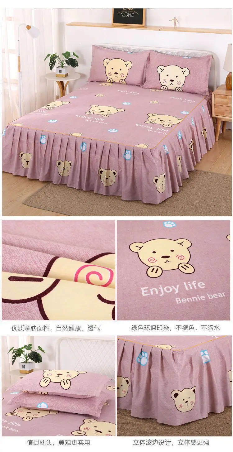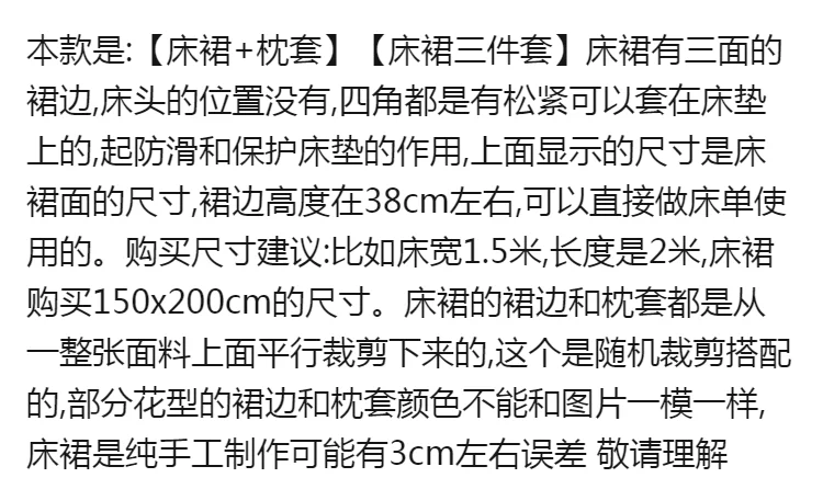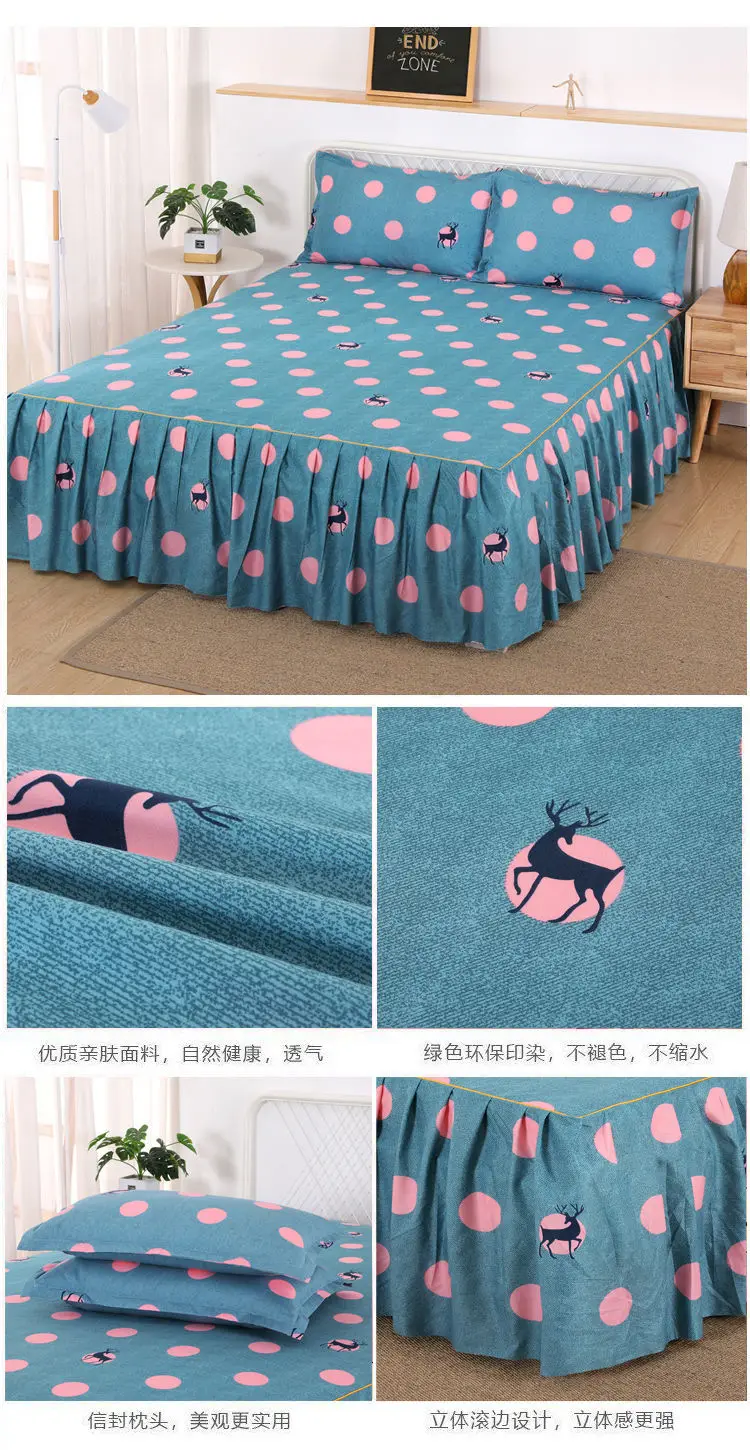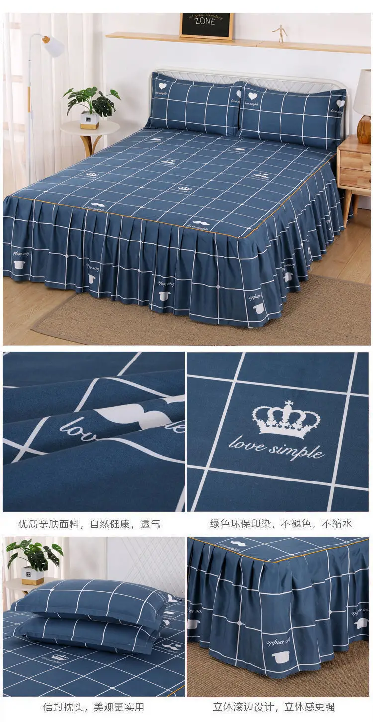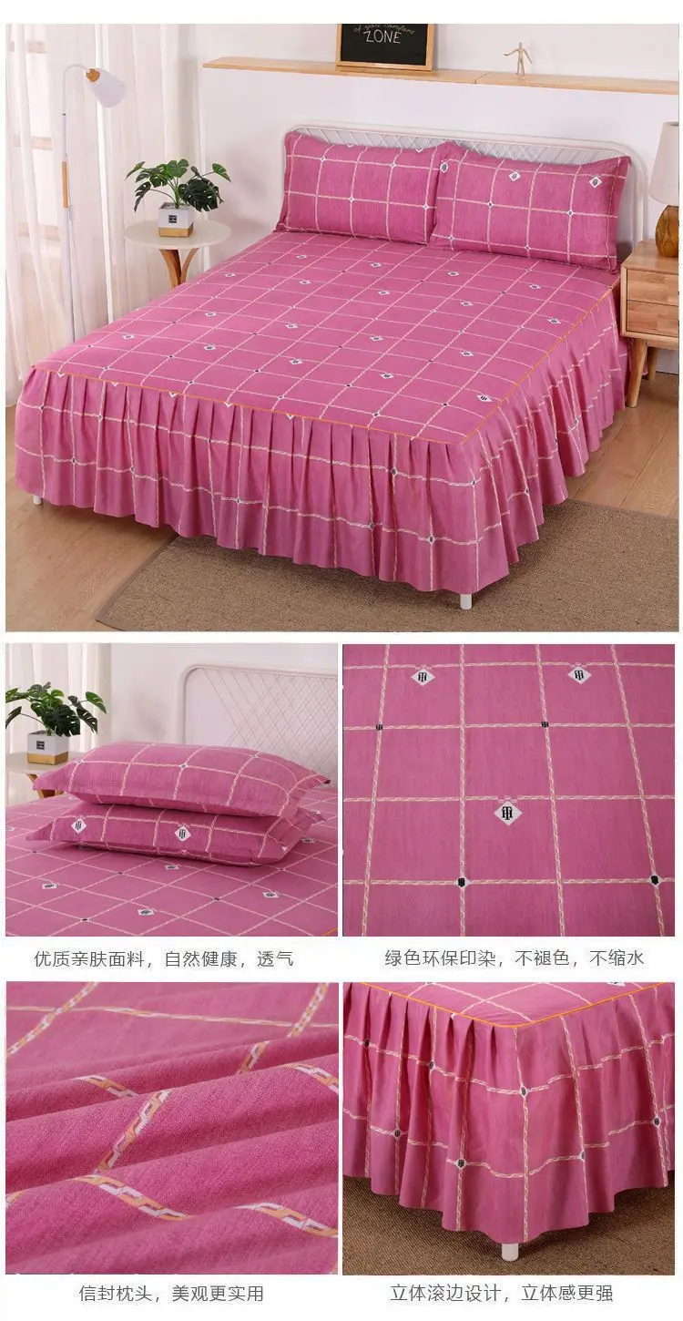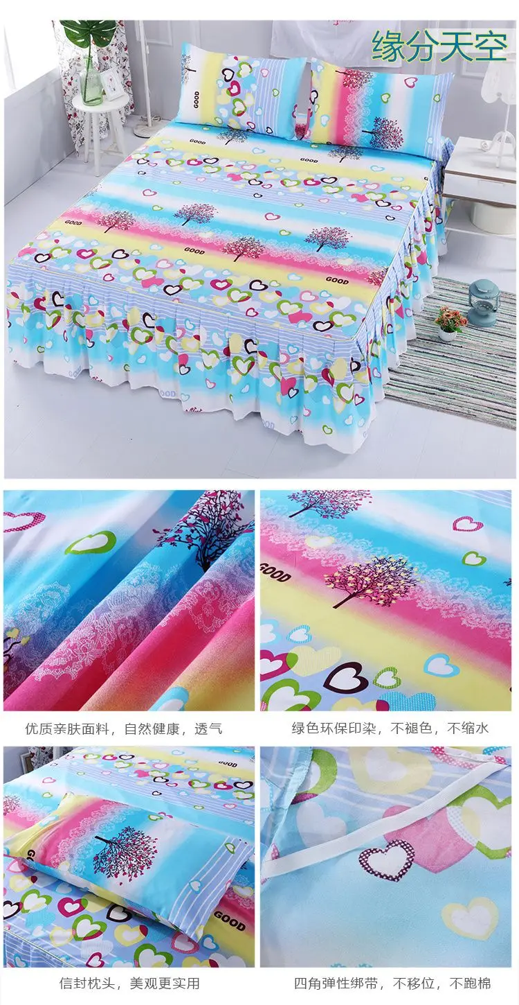 Bed Sheet Set Flower Bedspread - Non-Slip Bed Dress Sheet for King/Queen Size (1.5M/1.8M/2M) Beds Soft Home Bedding Cover