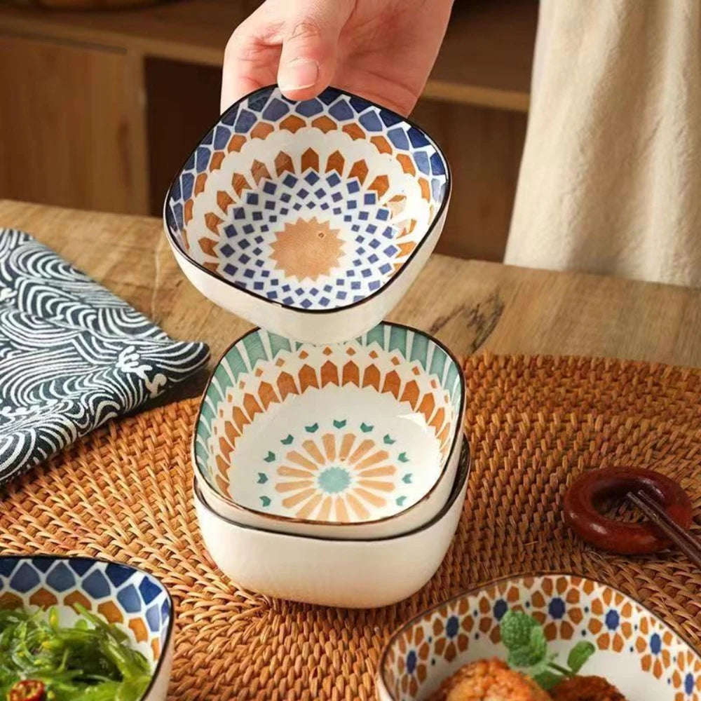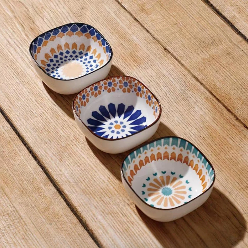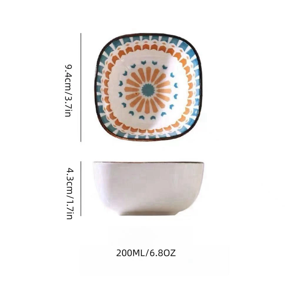 Bohemian style ceramic bowl household sauce bowl small square bowl Japanese snack bowl creative pickle dish