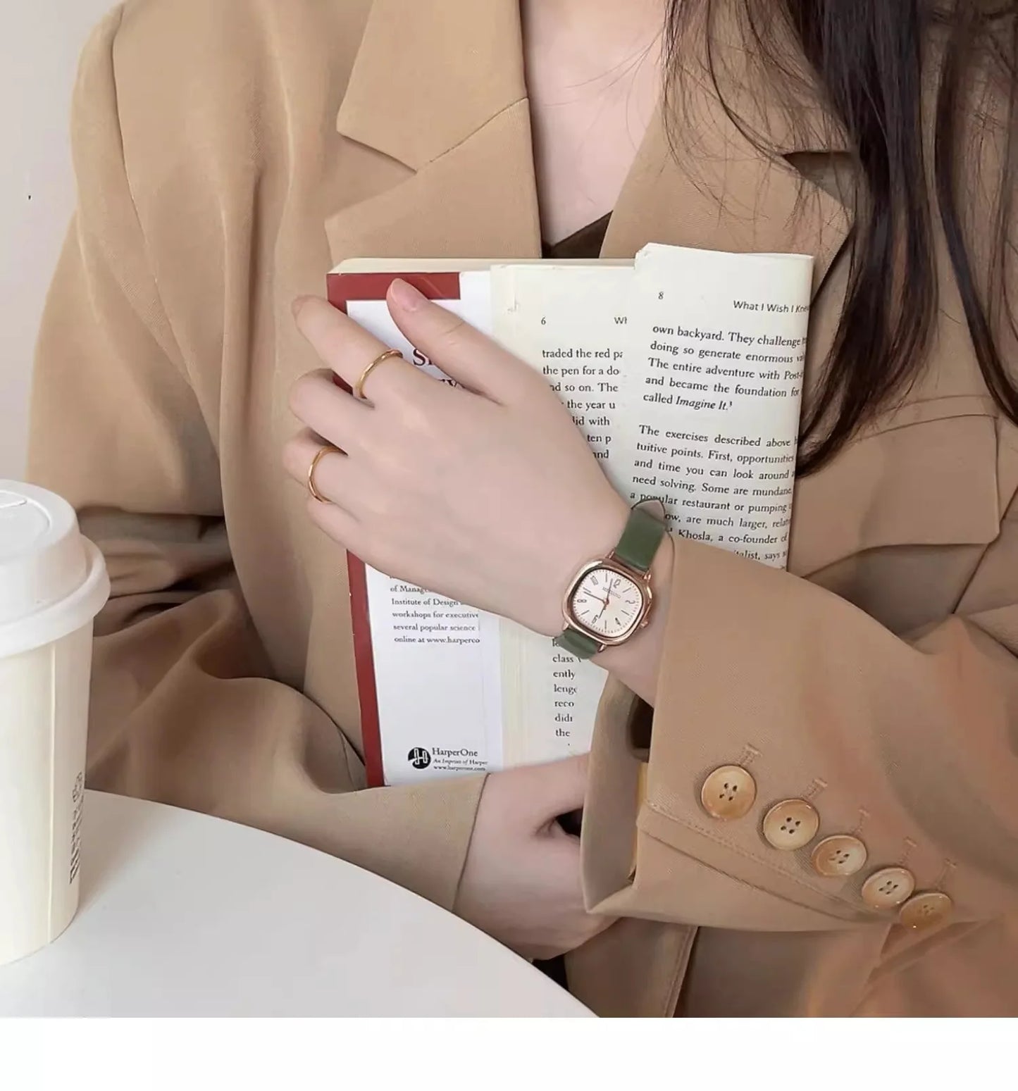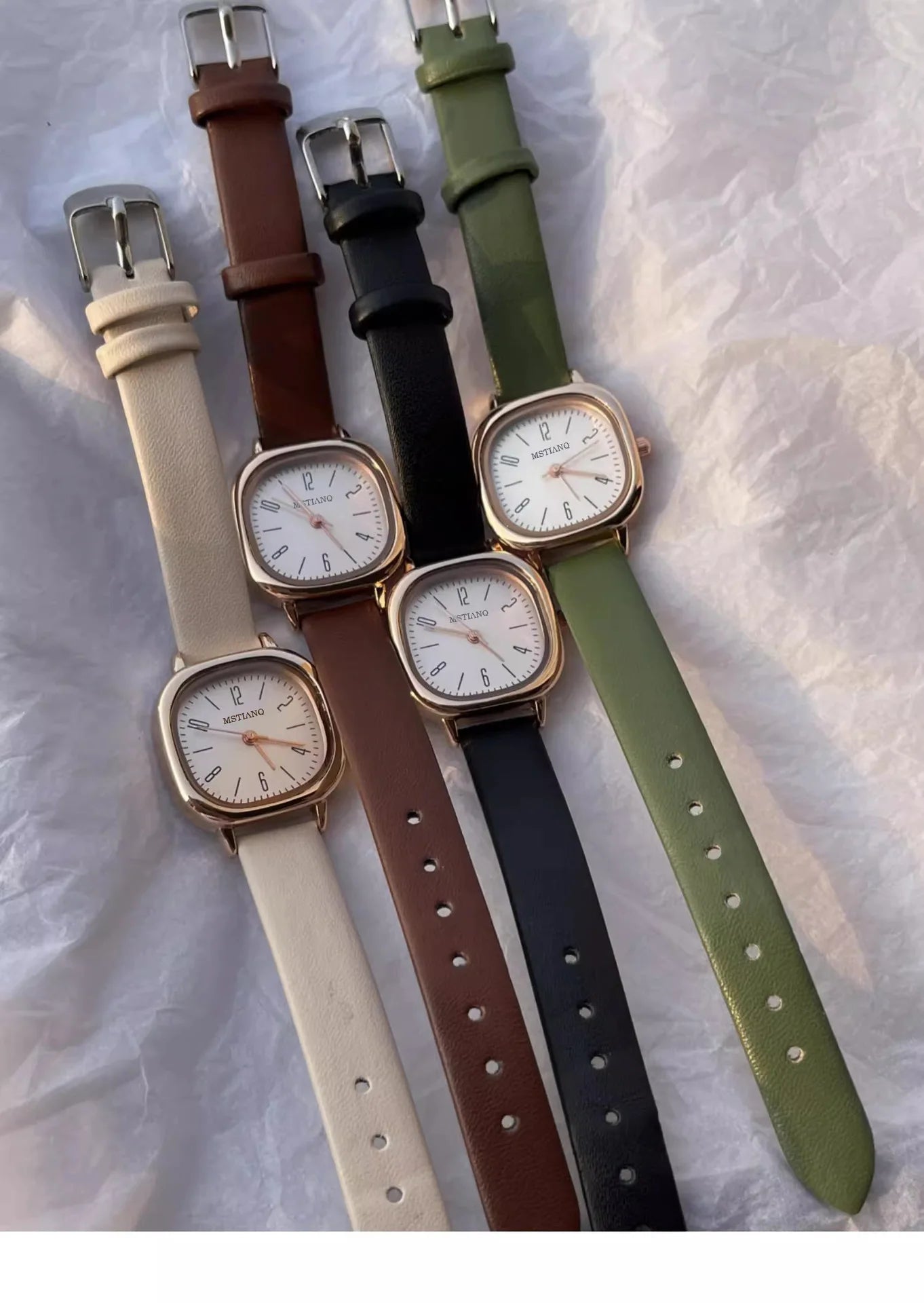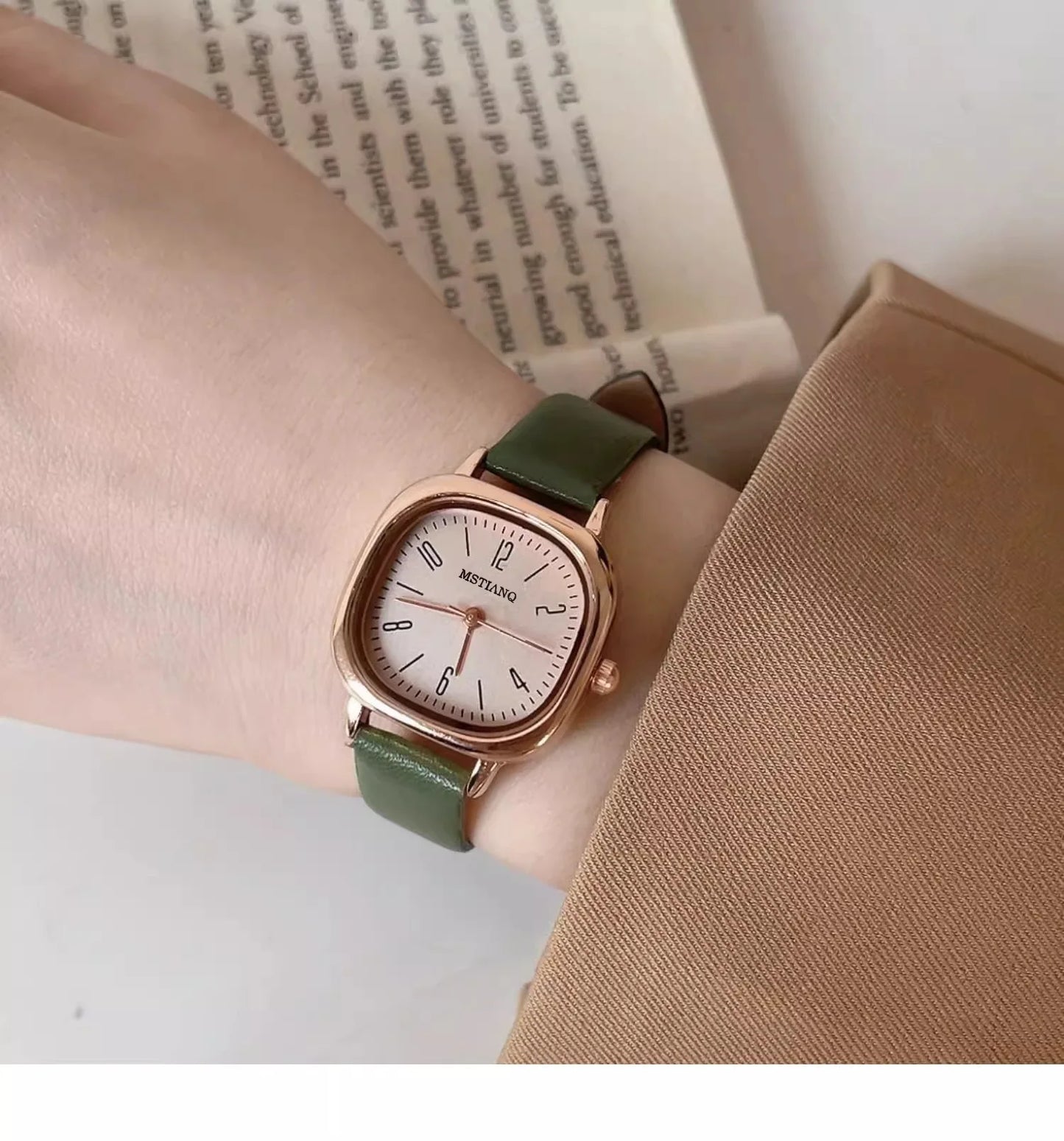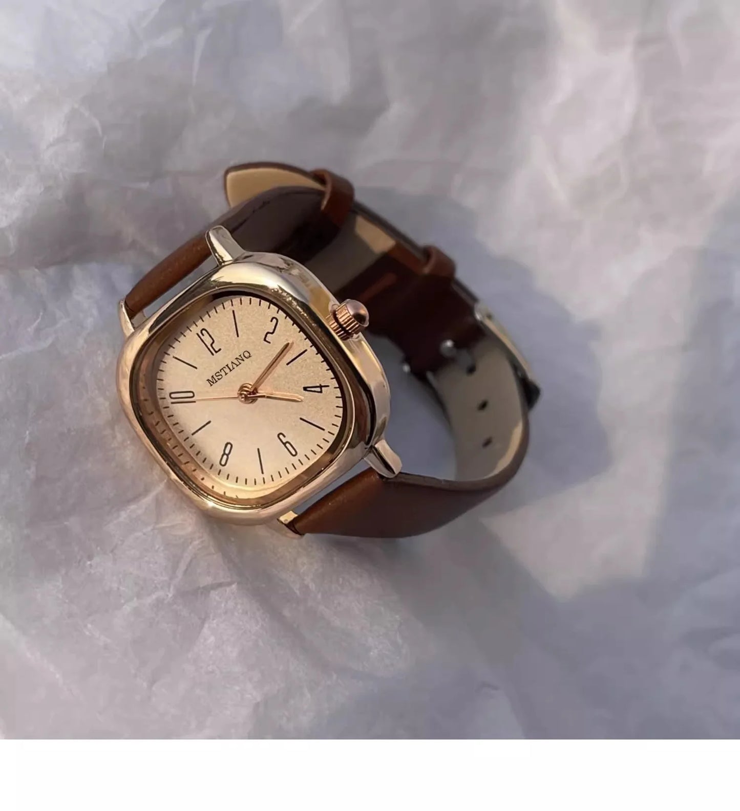 Casual Wrist Watches Retro Square Quartz Digital Mini Dial Leather Strap Fashionable Clock Waterproof Wristwatch for Women