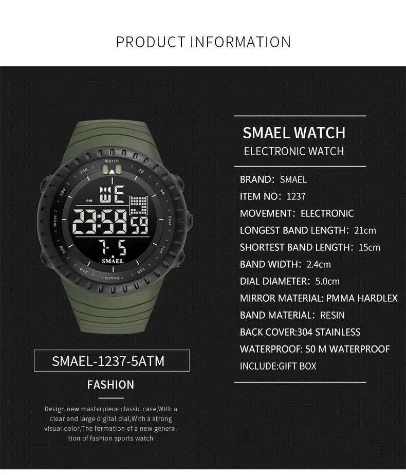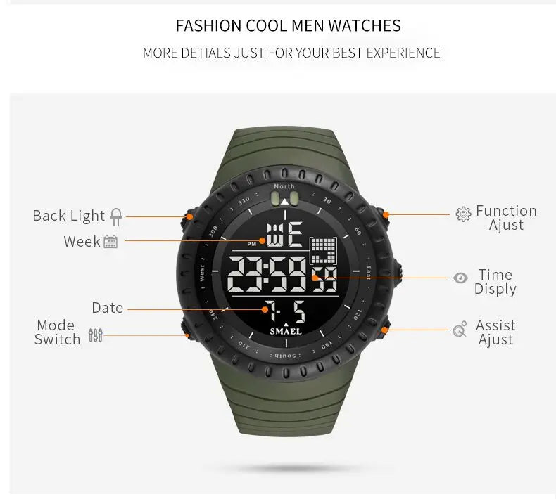 Digital Men Watch Fashion Waterproof Big Dial Electronic Military Watches Black Tactical Sport Wristwath Stopwatch Male Clocks