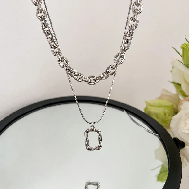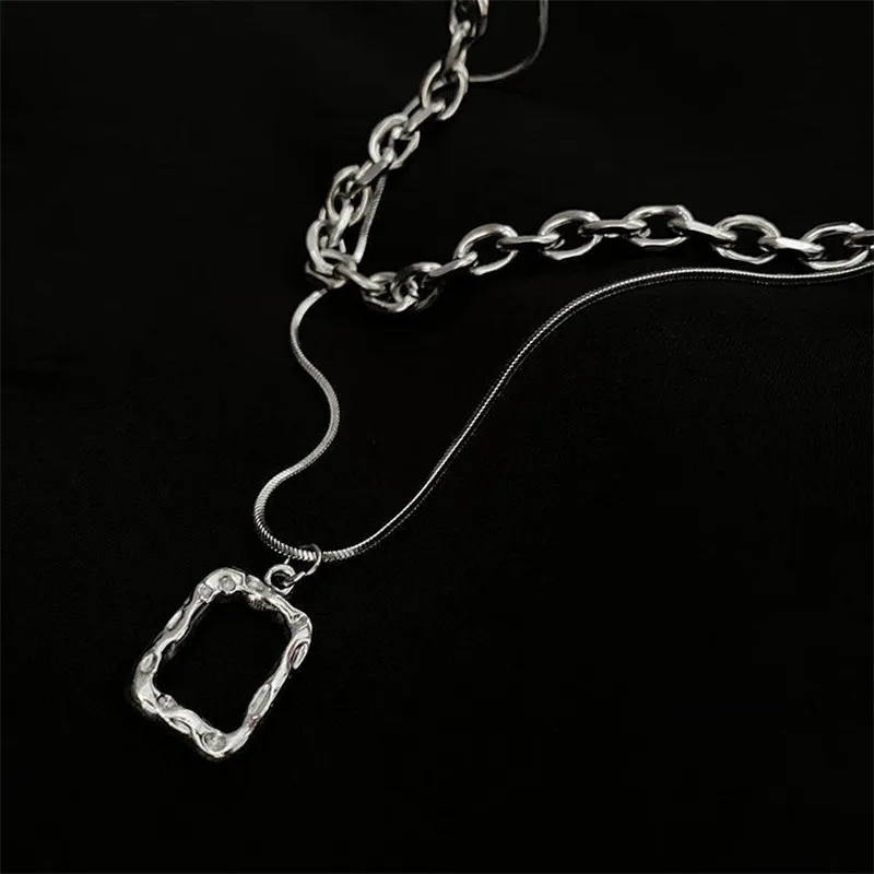Double Link Necklaces Women Charm Layered Pendant Square Hip Hop Long Chain Punk Aesthetic Party Jewelry Accessories Gift
