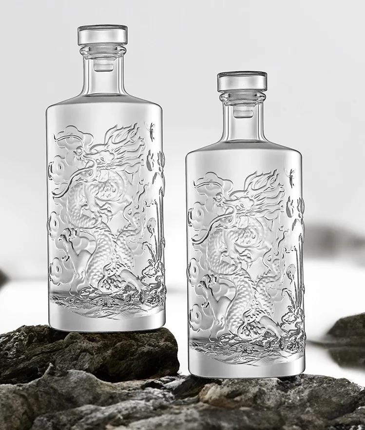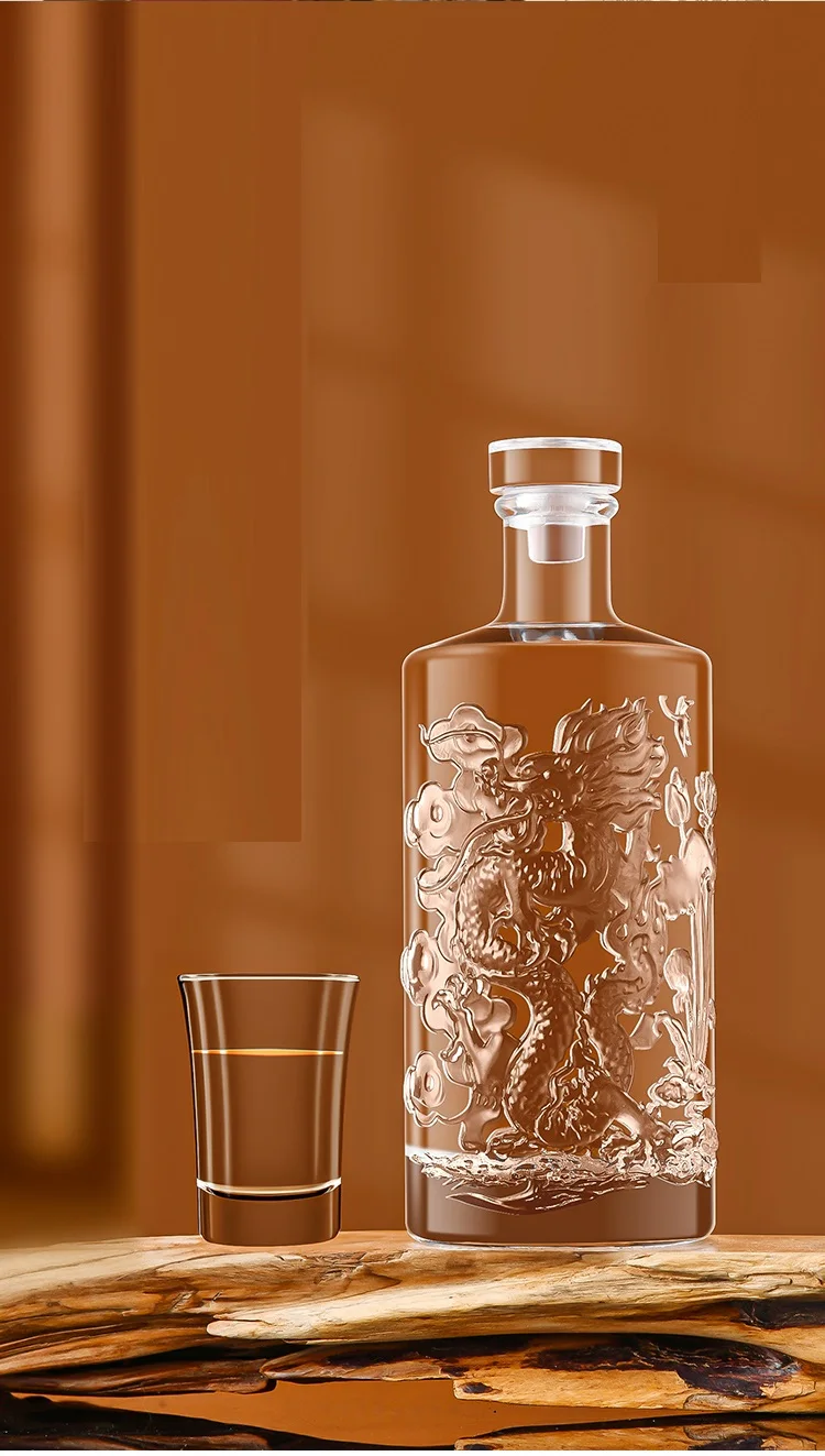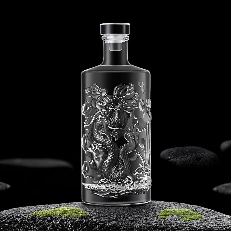 Dragon Engraved 500ML Round shaped whiskey decanter barware Alcohol Bottle for Liquor Scotch Bourbon