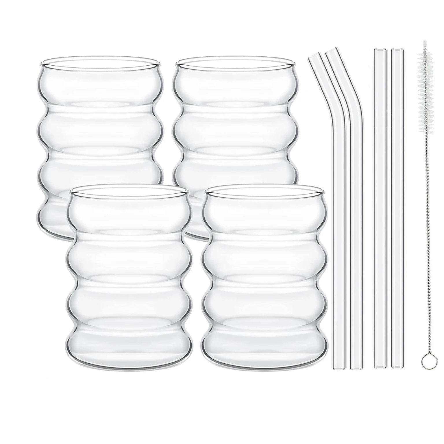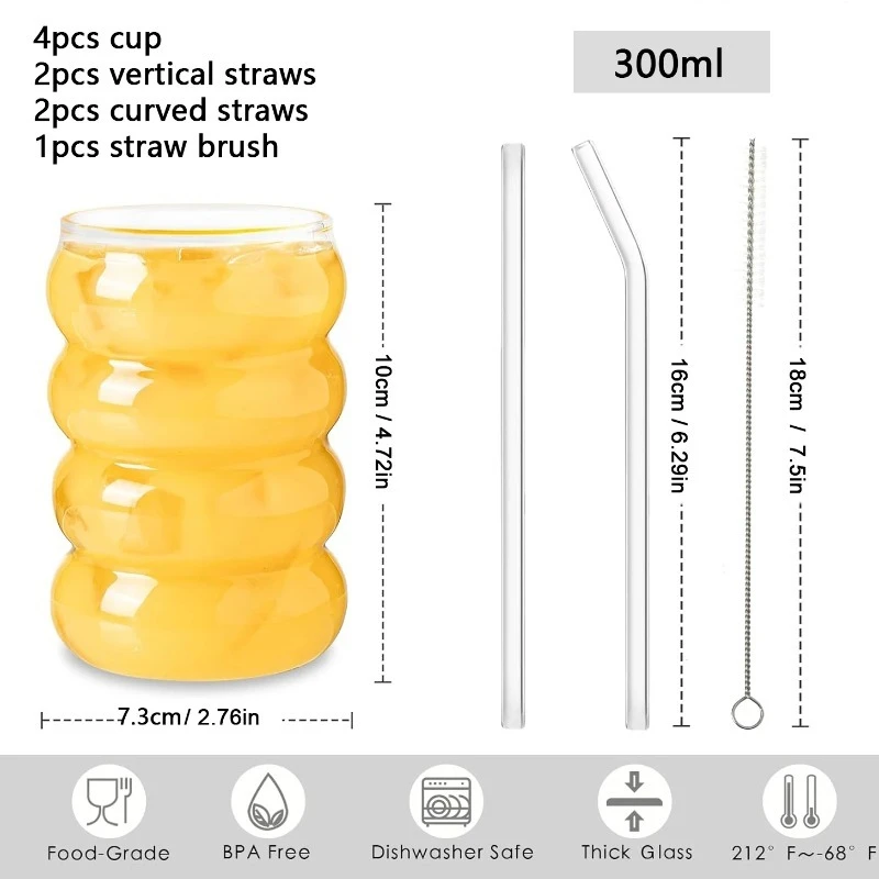 Drinking Glasses Ribbed Glassware Cups with Straws Set Cocktail Fruit Glass Drinkware Creative Glass Cups Coffee Mug Clear