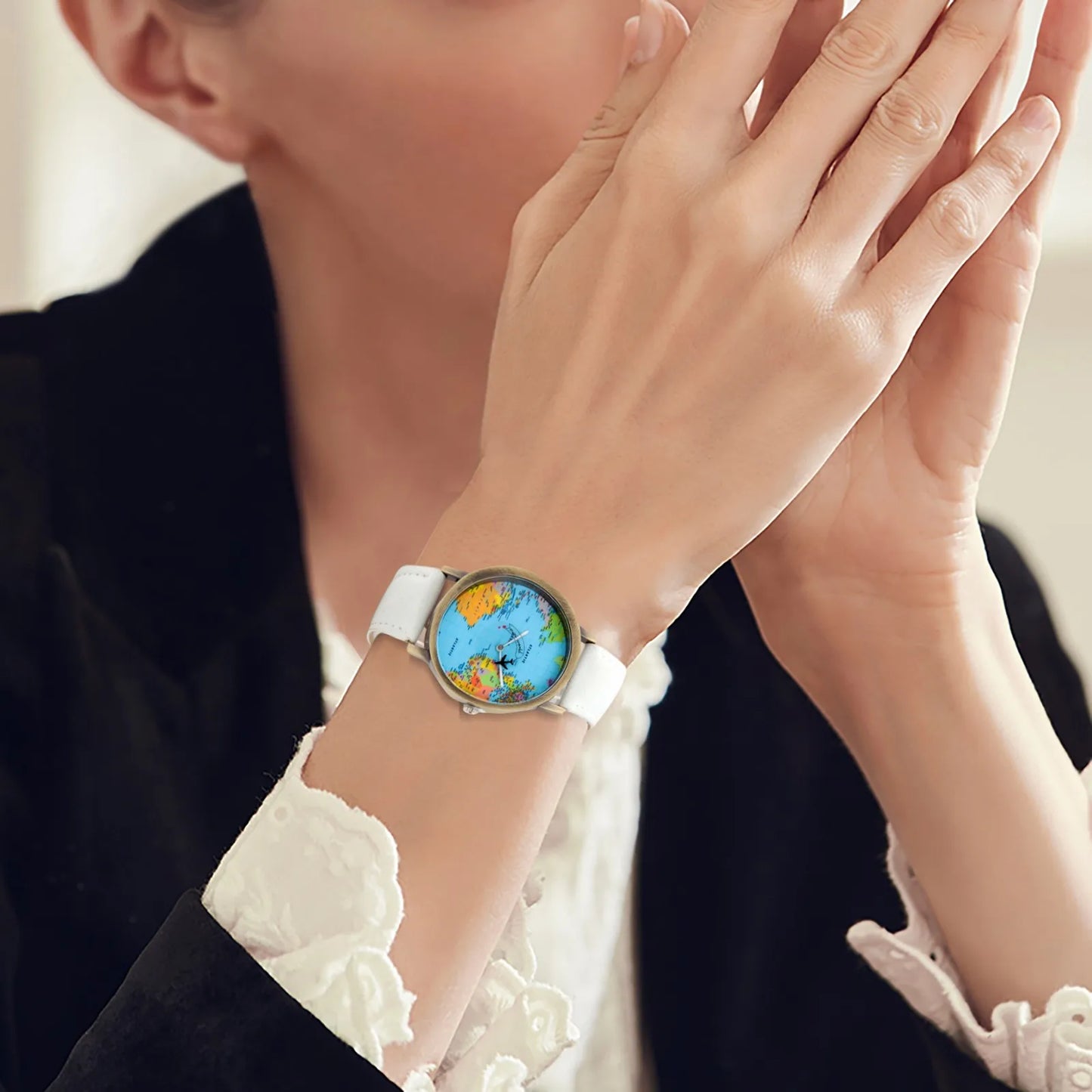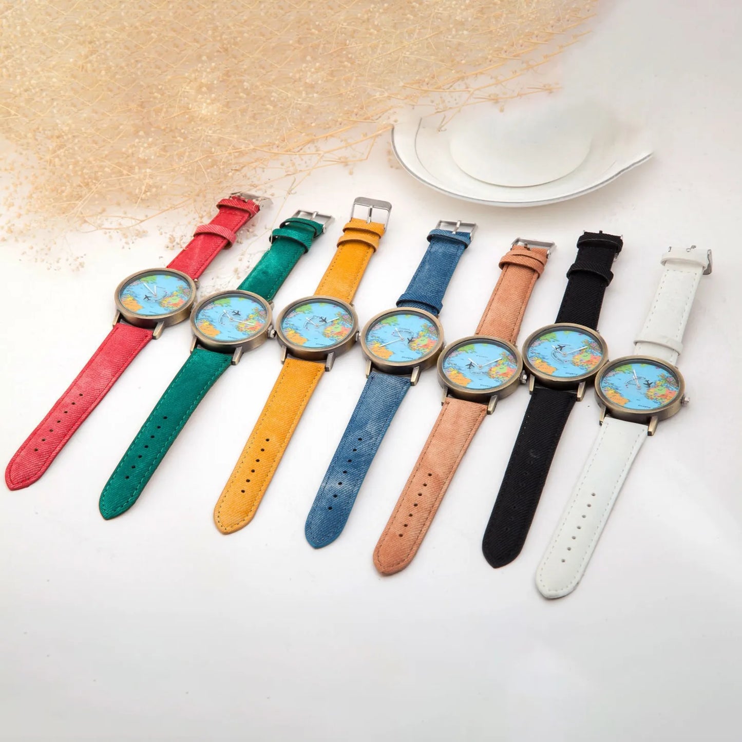 Fashion Global World Map Plane Denim Fabric Band Watch Casual Men Women Wristwatches Quartz Watch Gift Horloges Relógio
