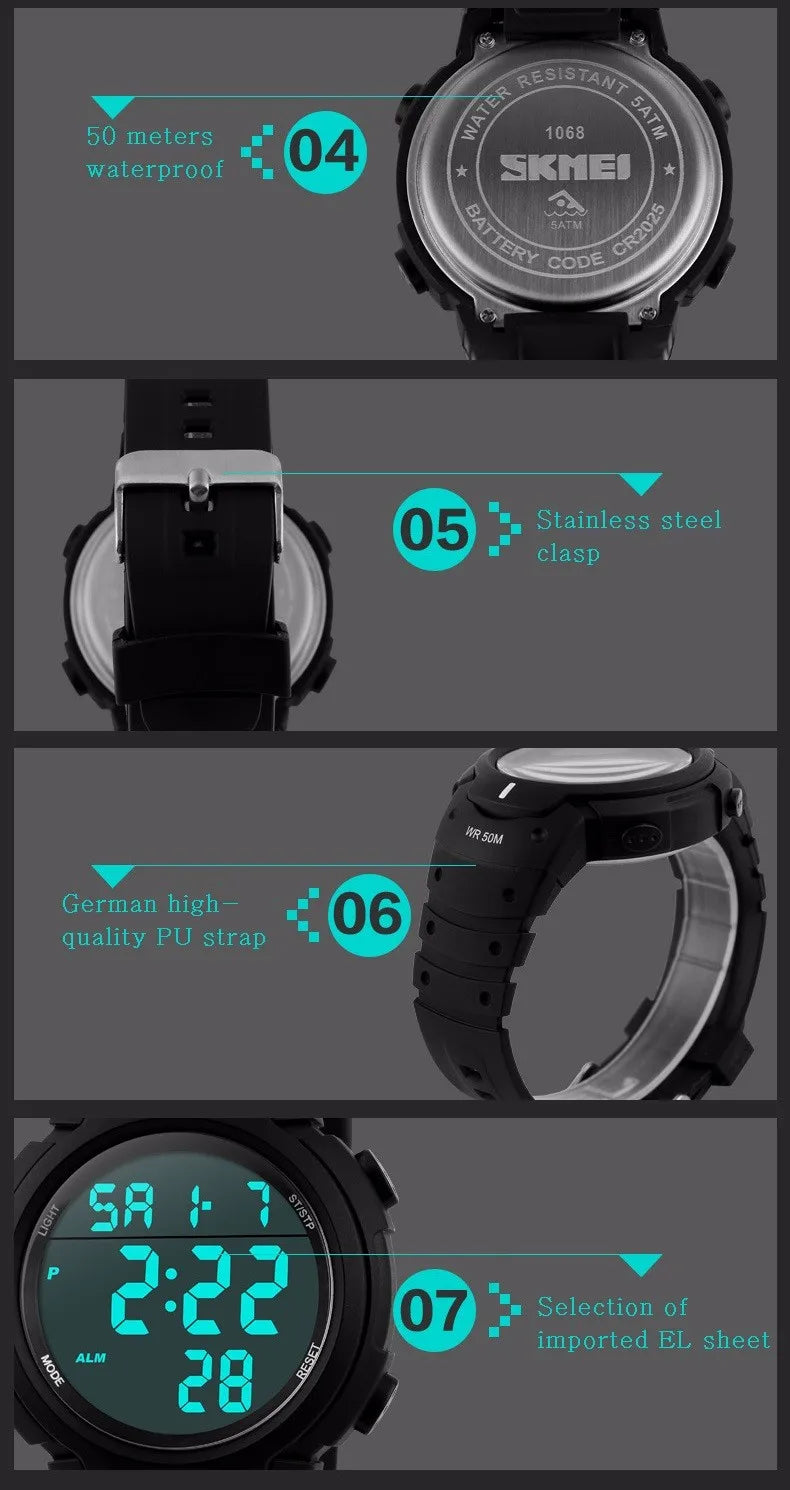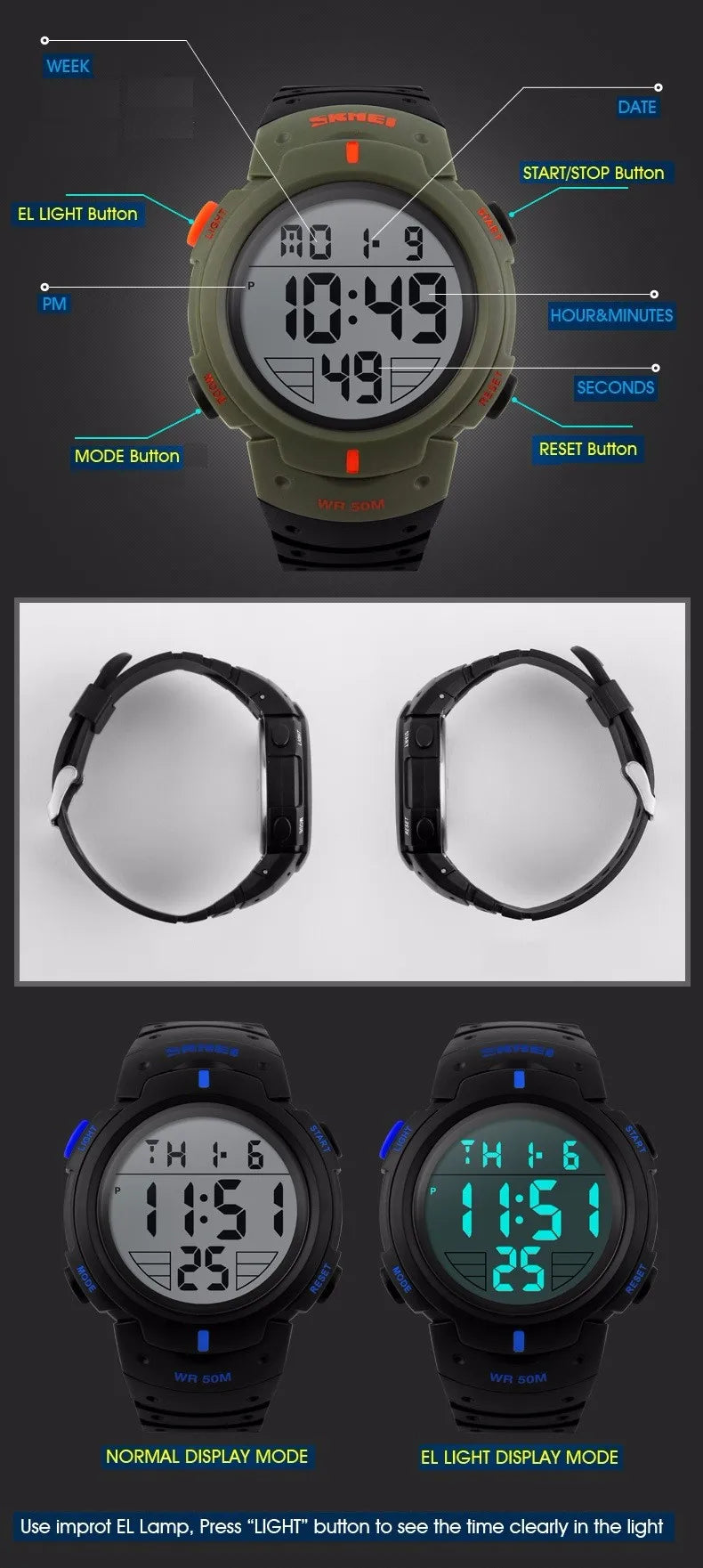 Fashion Men Sports Watches Digital Clock LED Military Watch Waterproof Outdoor Dress Wristwatches Men Electronics Wristwatches