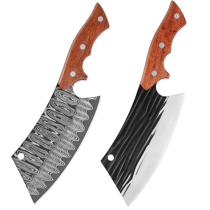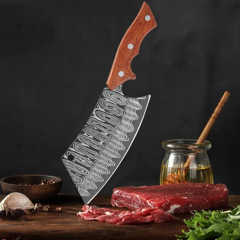 Forged Kitchen Chef Knives Laser Pattern High Carbon Clad Steel Meat Fish Fruit Vegetables Slicing Butcher Cleaver Knife