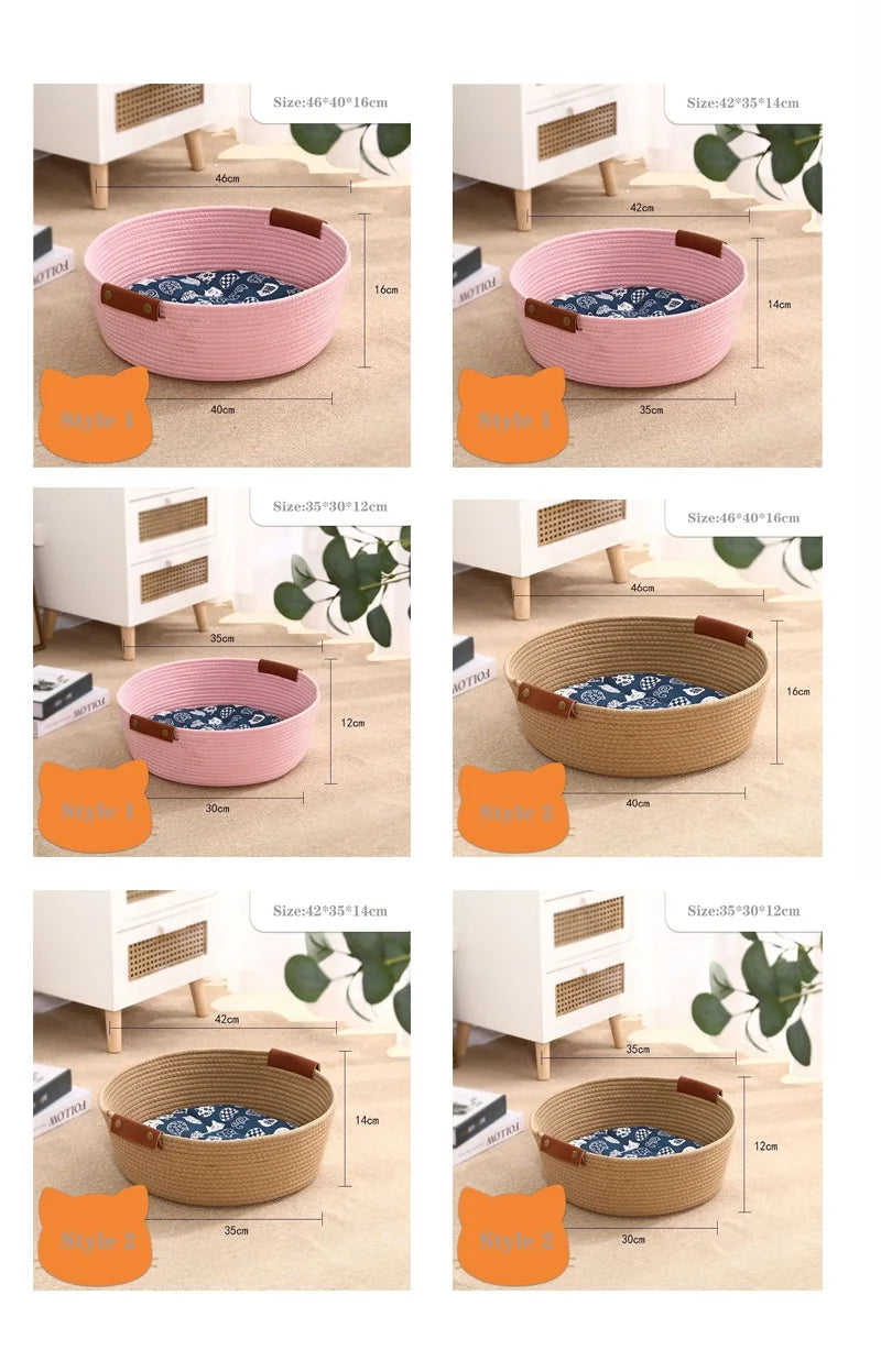 1. Pet-safe natural material: Our cat bed is made of pure hand-woven paper rope exterior, mesh breathable fabric interior filled with PP cotton, and a removable round pillow covered with short plush fabric, which feels soft and warm.