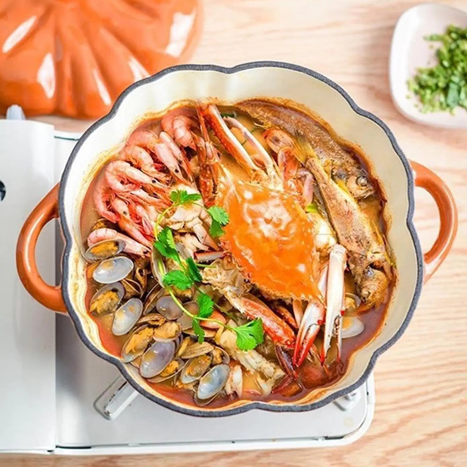 2.Smooth and Sturdy Build: Designed using enameled cast iron for lasting smoothness, supported by a robust thickened bottom to distribute heat evenly, while integrated side handles ensure secure and easy maneuverability