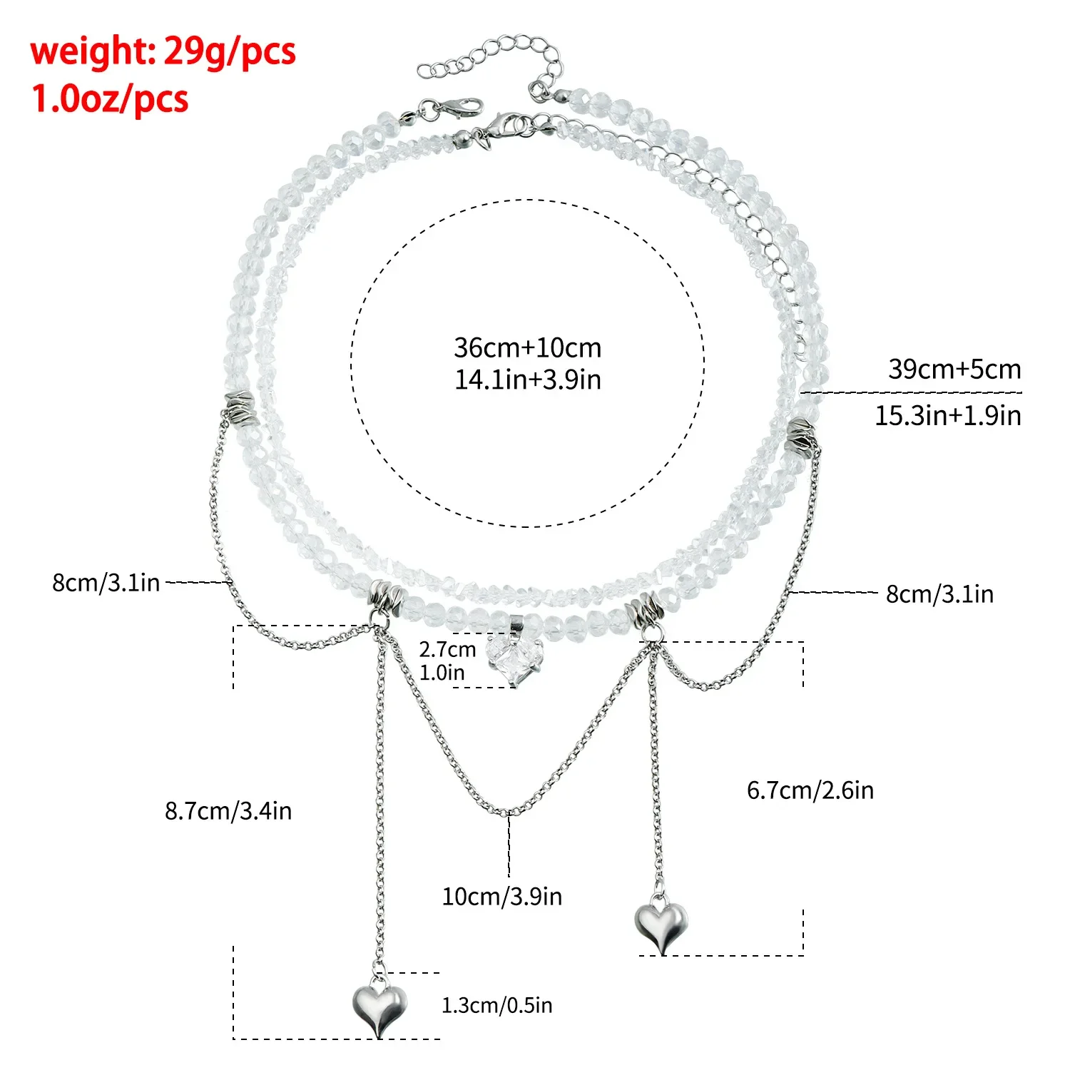 Y2k Choker Necklaces Heart Pendant Chain Jewellery Women Glass Multilayer Neck Collier Femme Cadenas Para Mujer for Girls Women