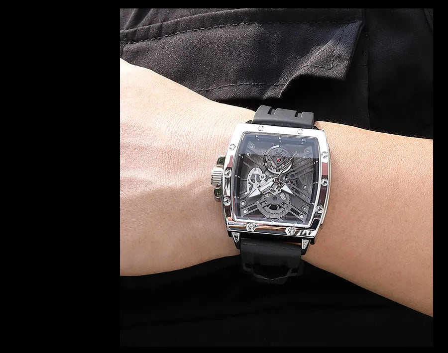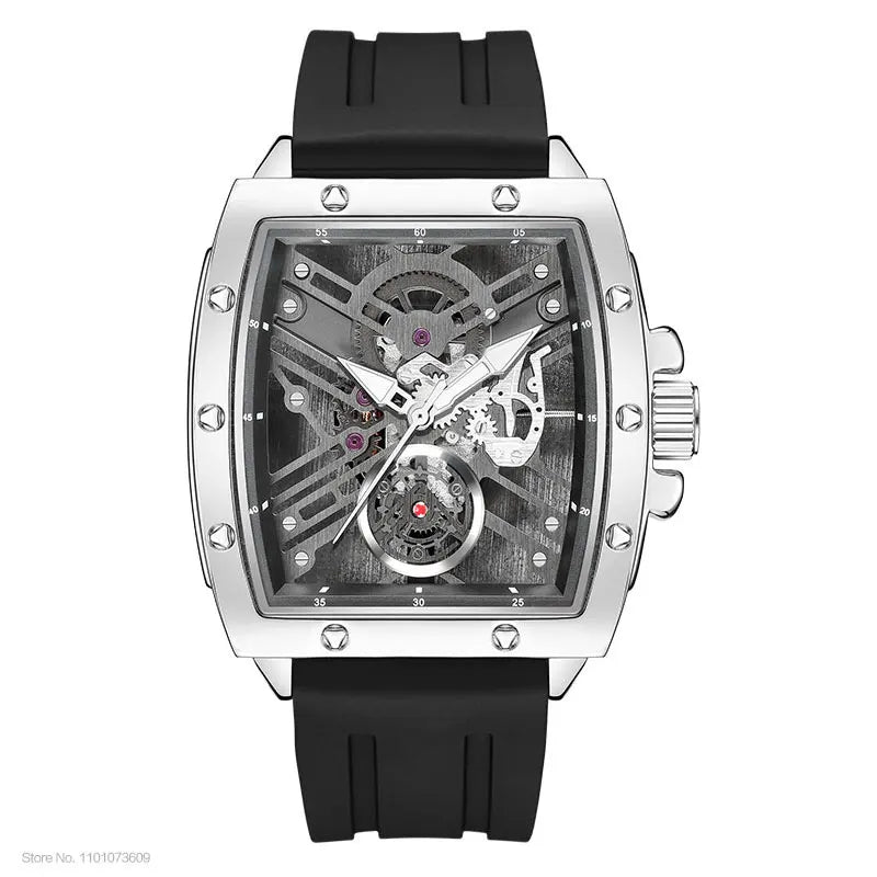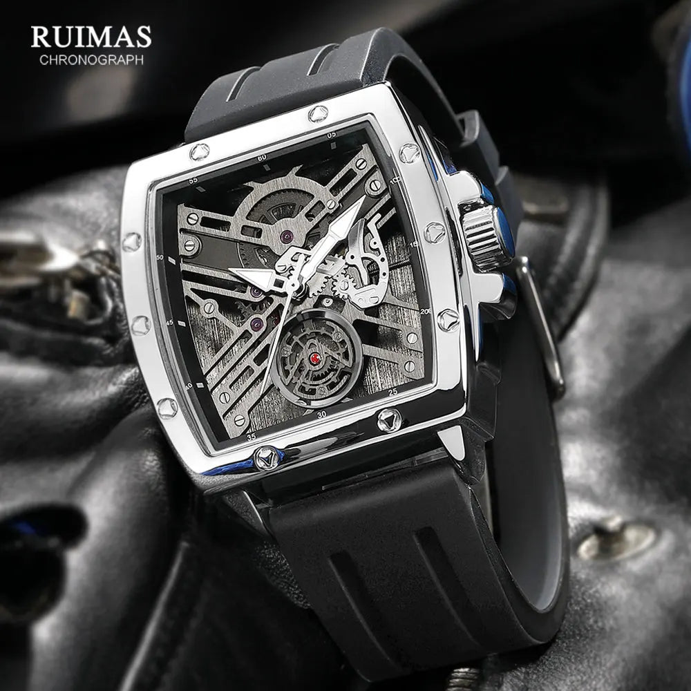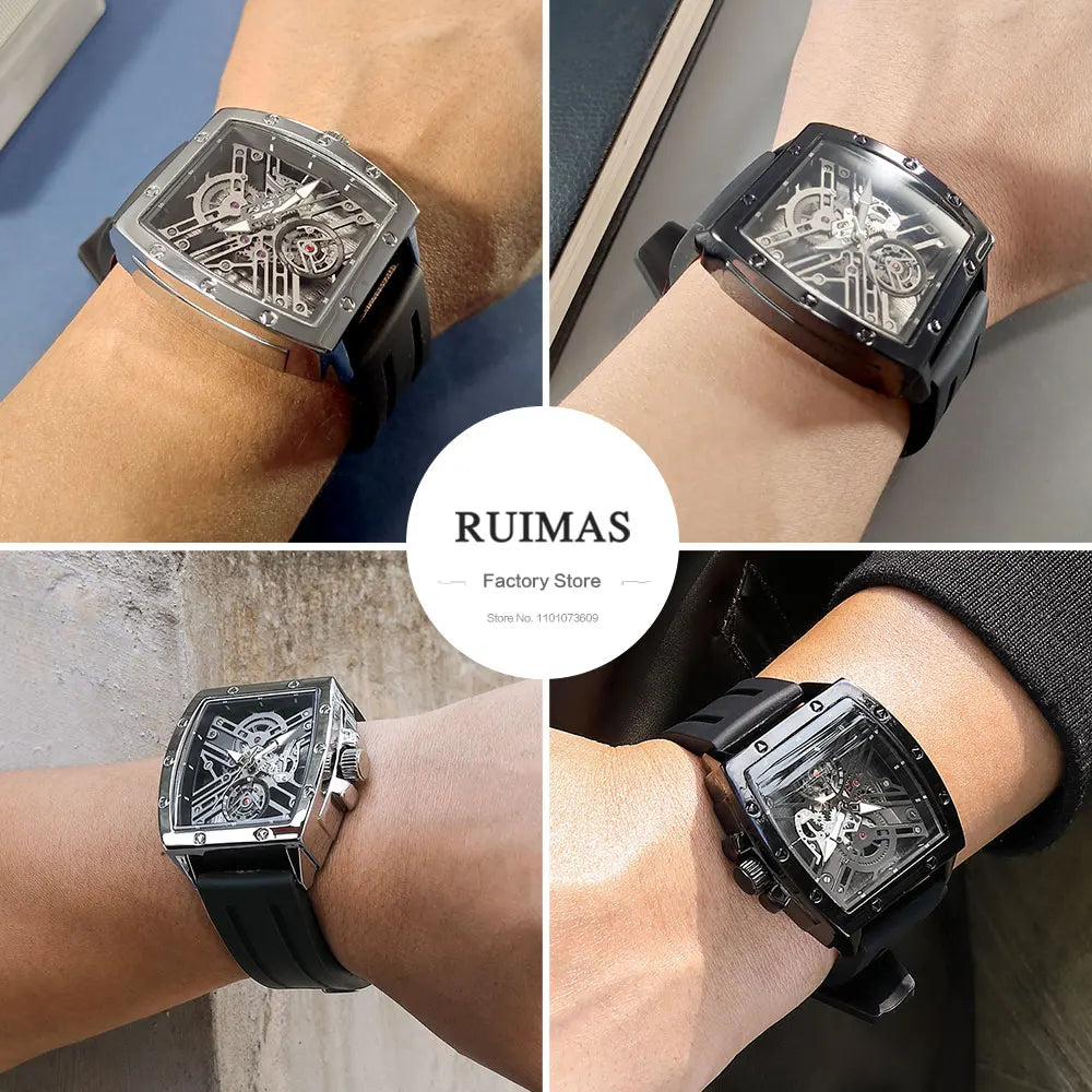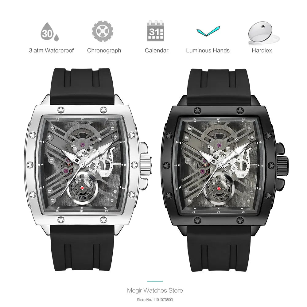 MEGIR & RUIMAS Quartz Watches for Men Military Sport Silicone Strap Wristwatch Tonneau Dial 3atm Waterproof Luminous Hands 310