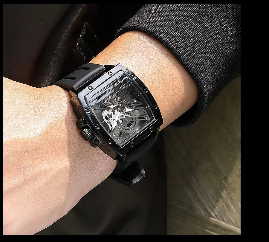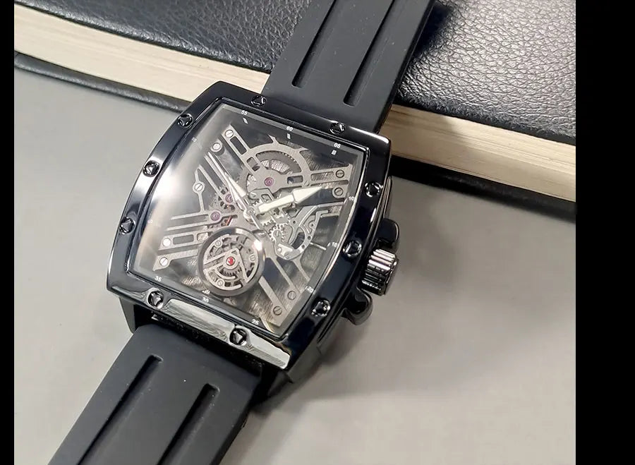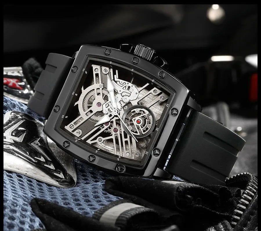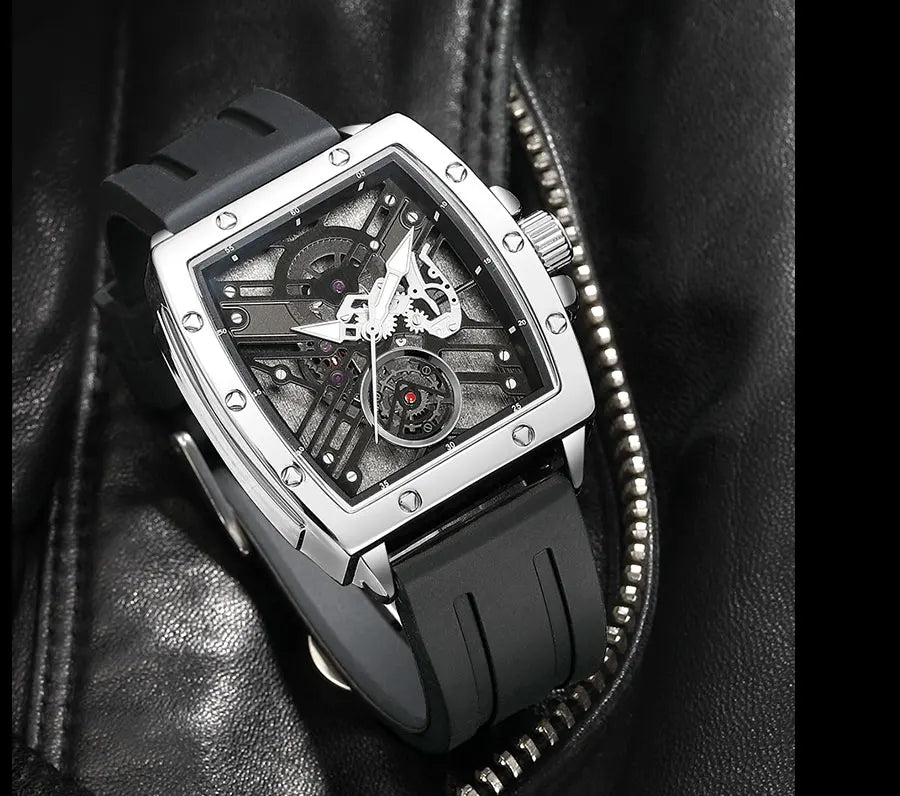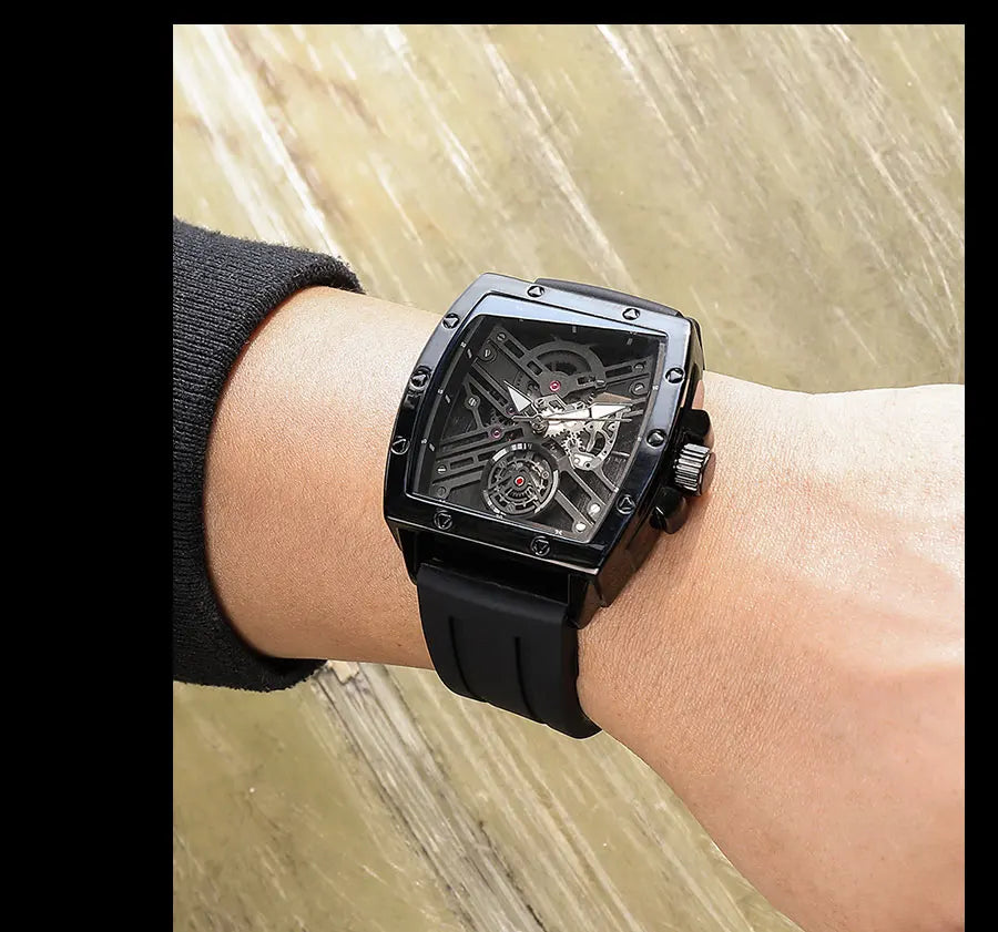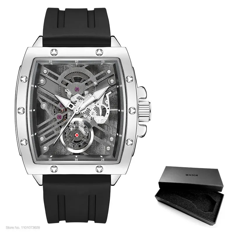 MEGIR & RUIMAS Quartz Watches for Men Military Sport Silicone Strap Wristwatch Tonneau Dial 3atm Waterproof Luminous Hands 310