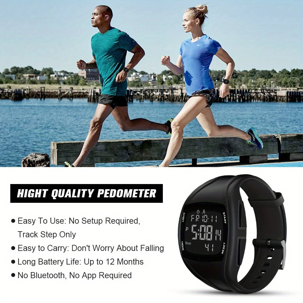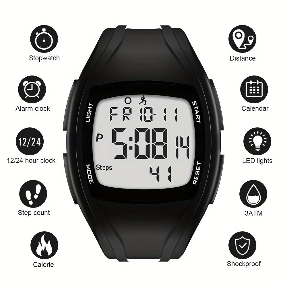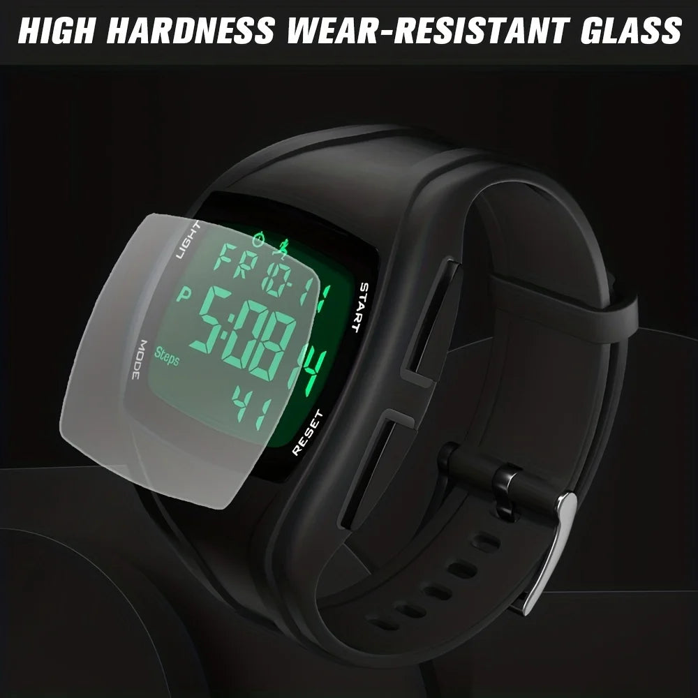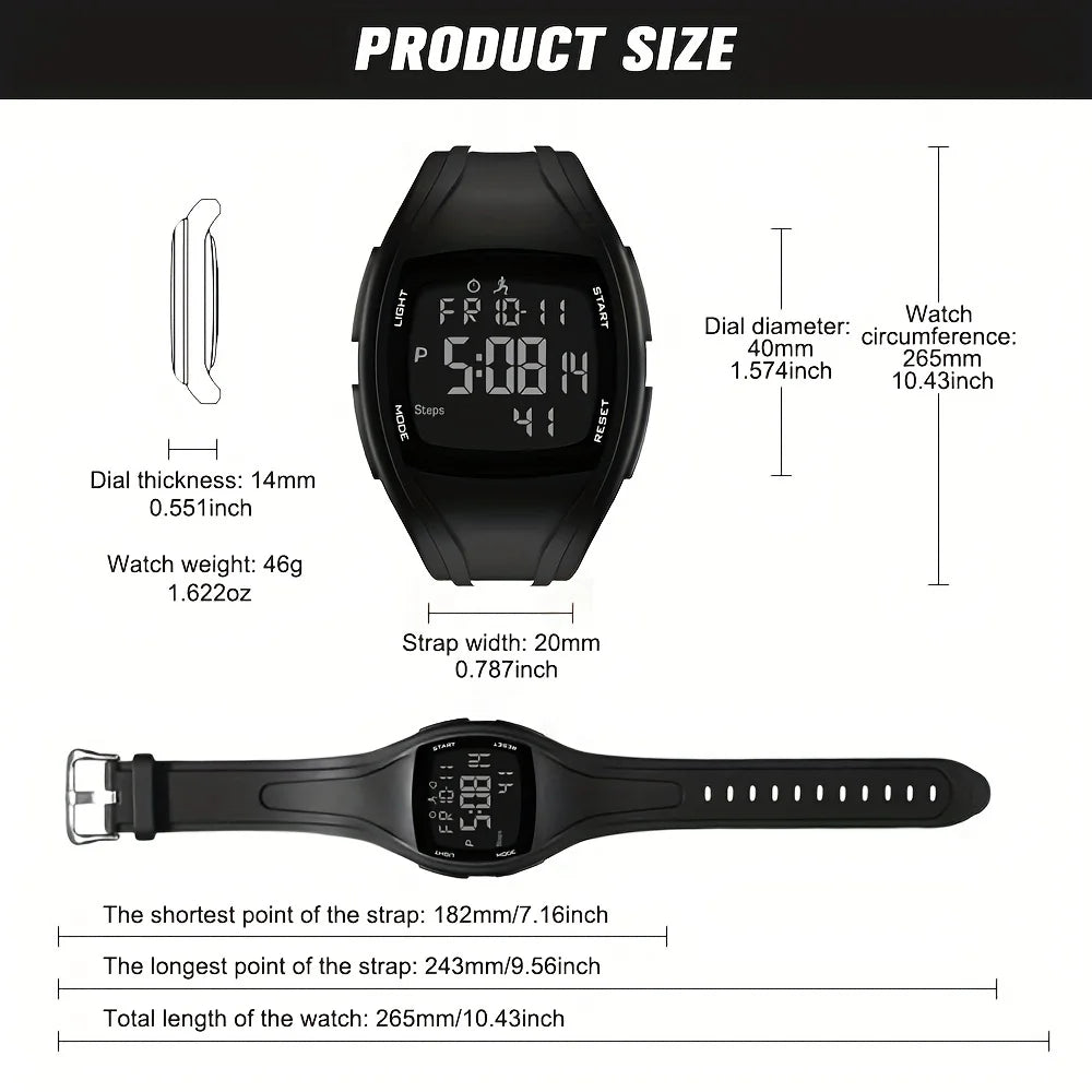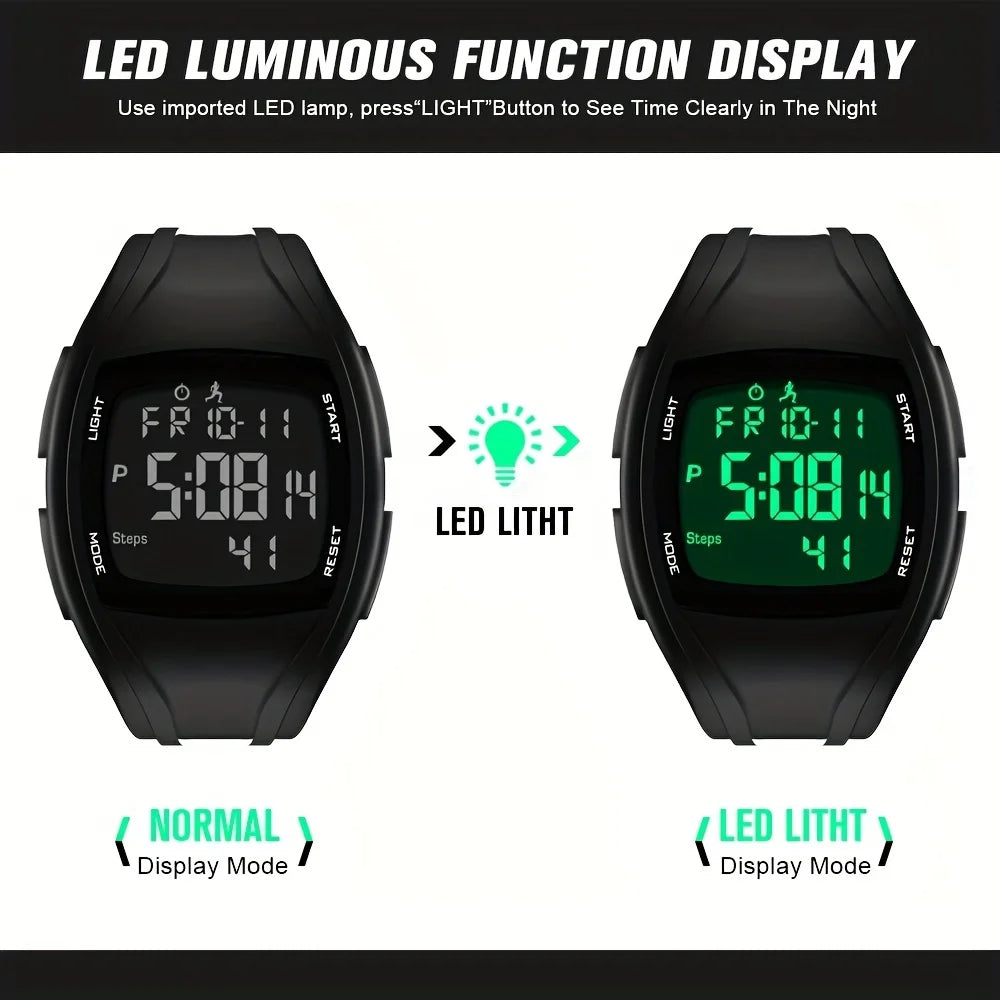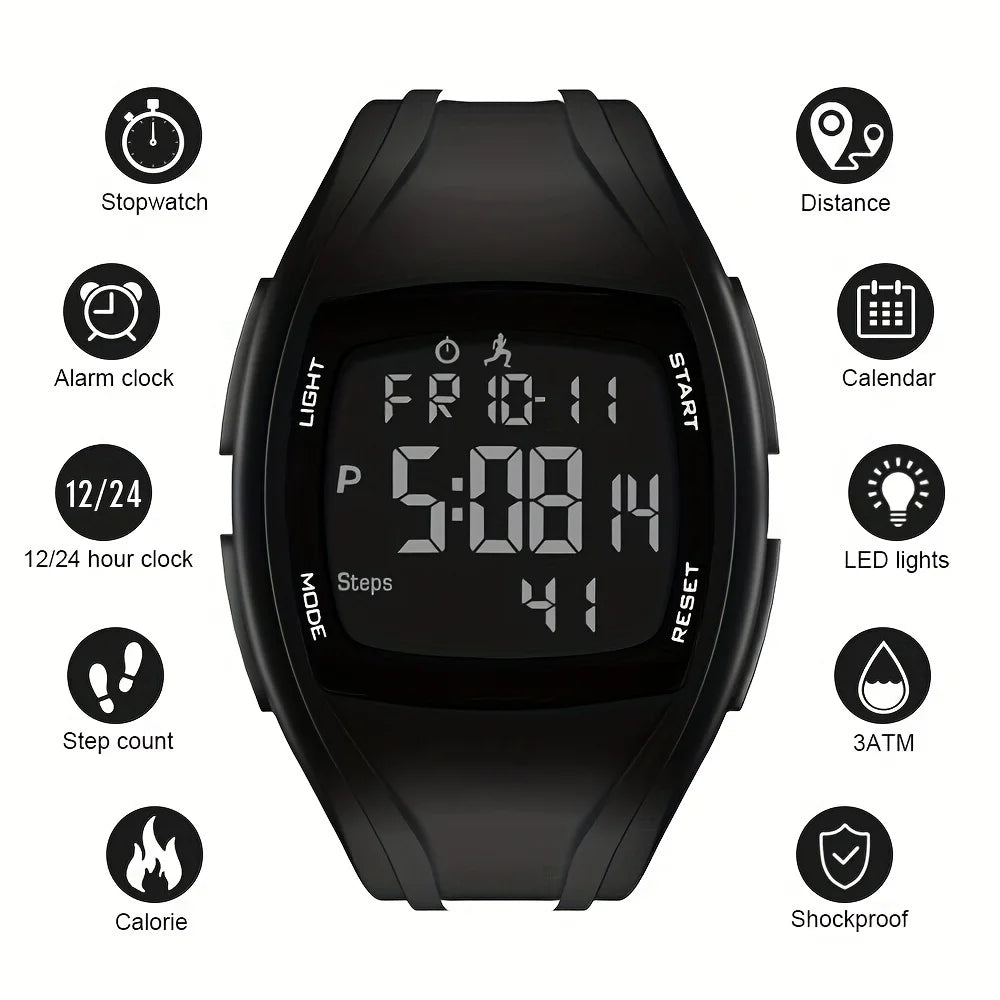 Men's Digital Watch, Outdoors Sports Waterproof Electronic Watches with LED Backlight 5D Pedometer Countdown Stopwatch Stopwatch