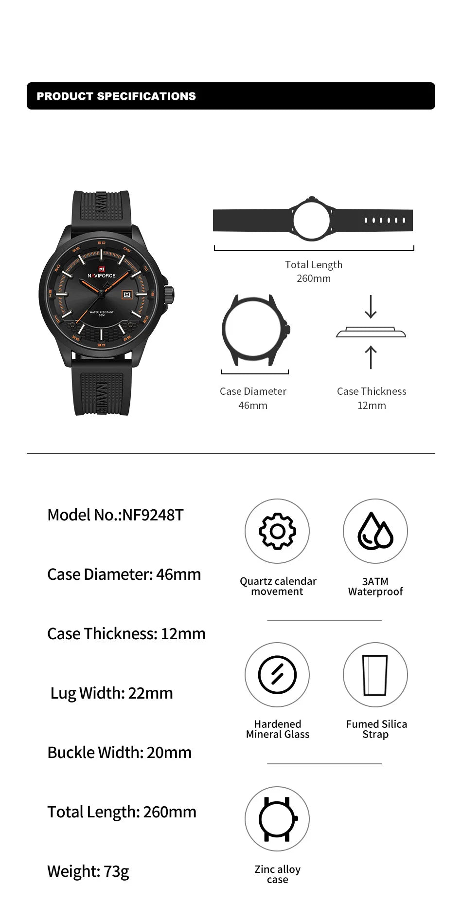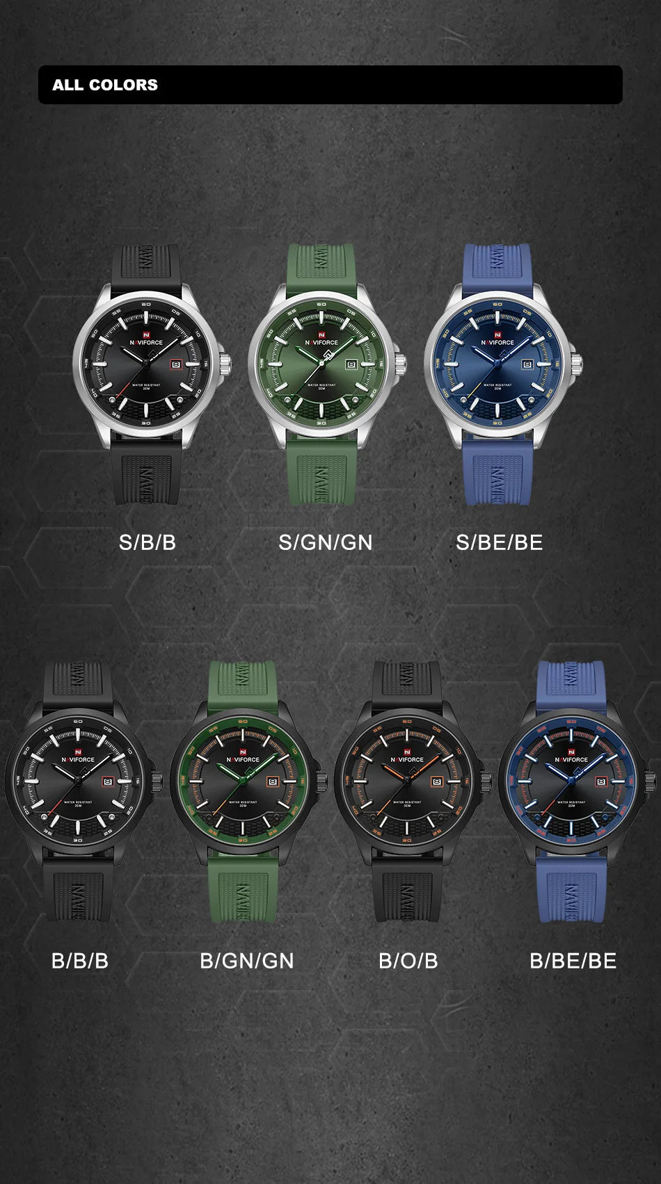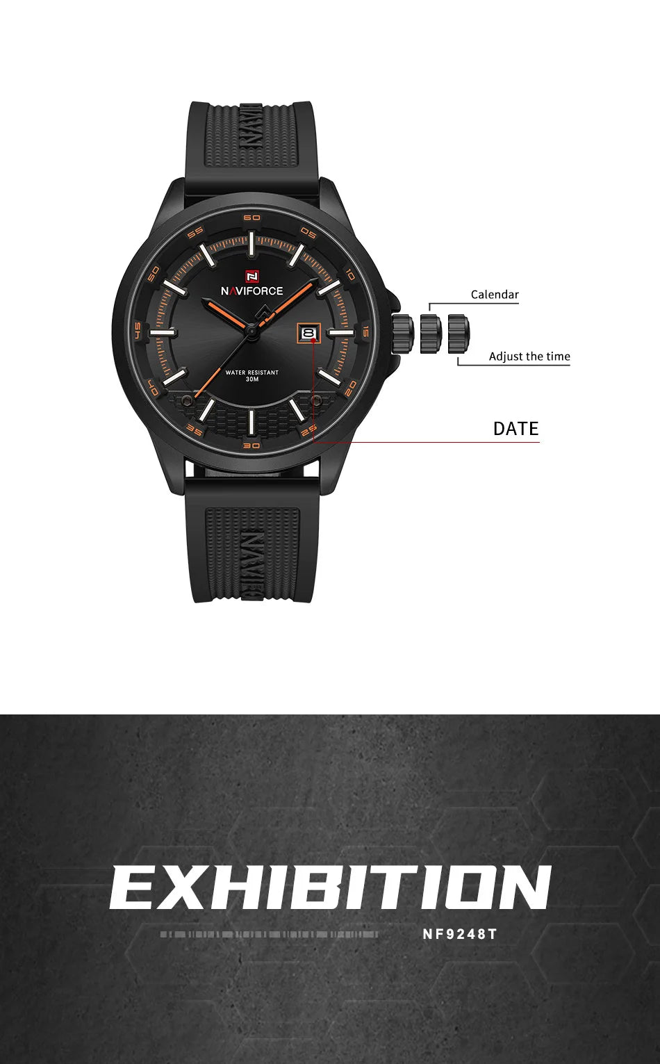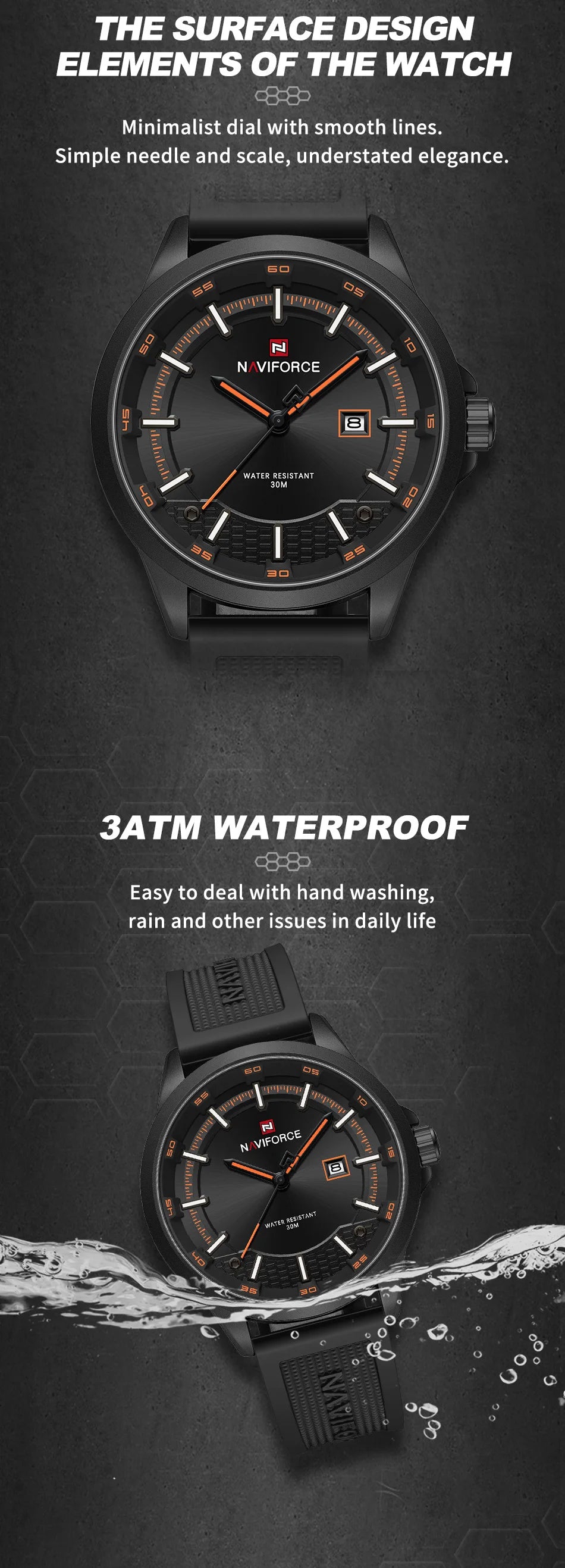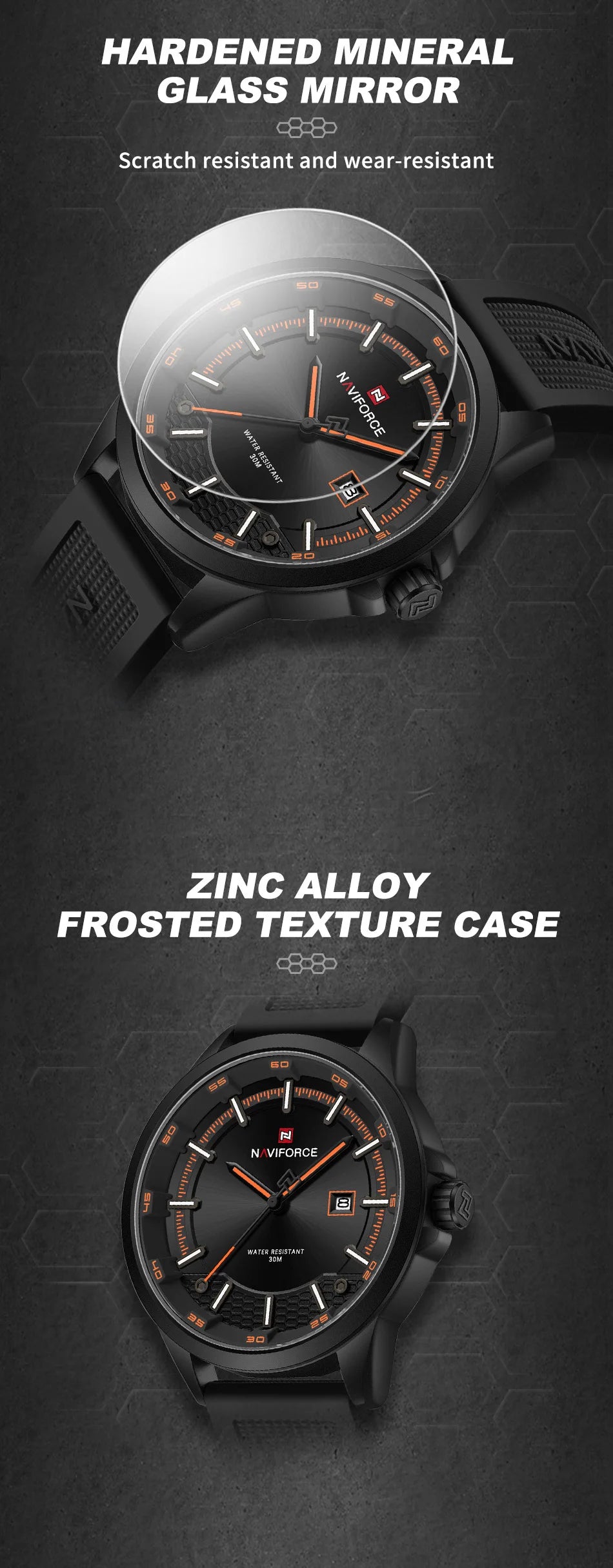 NAVIFORCE Fashion Outdoor Sports Military Watches for Men 30m Waterproof and Shockproof Auto Date Display Wristwatch Male Clocks