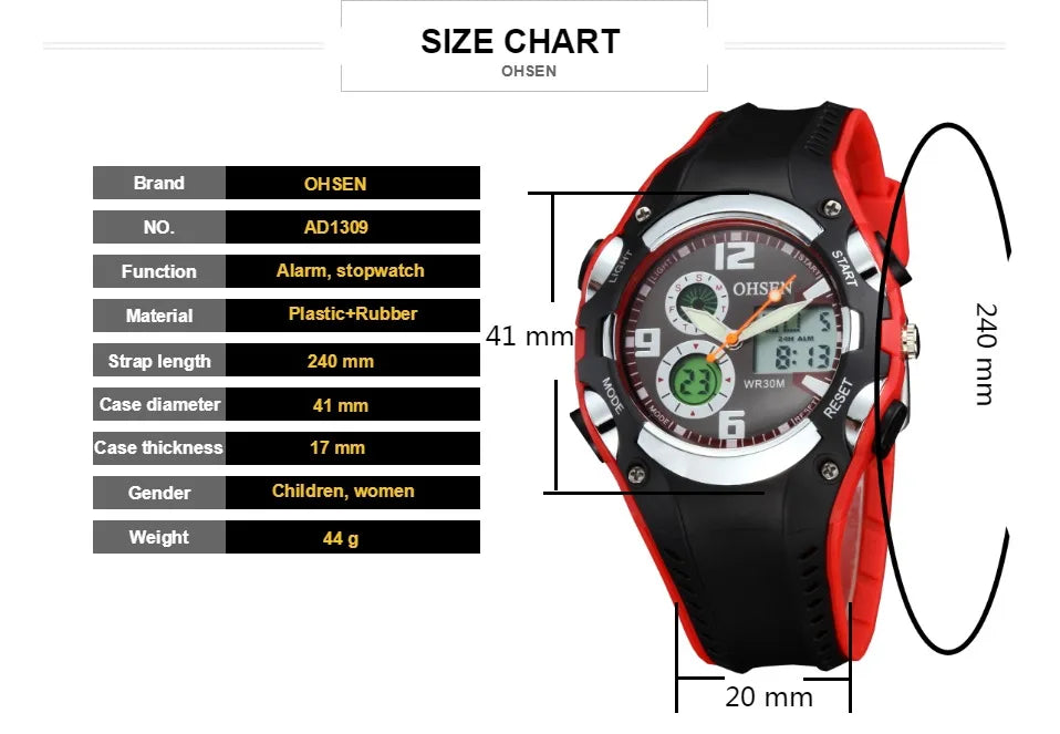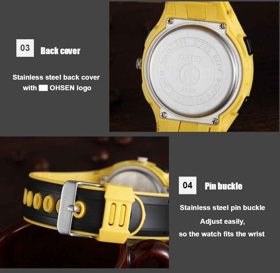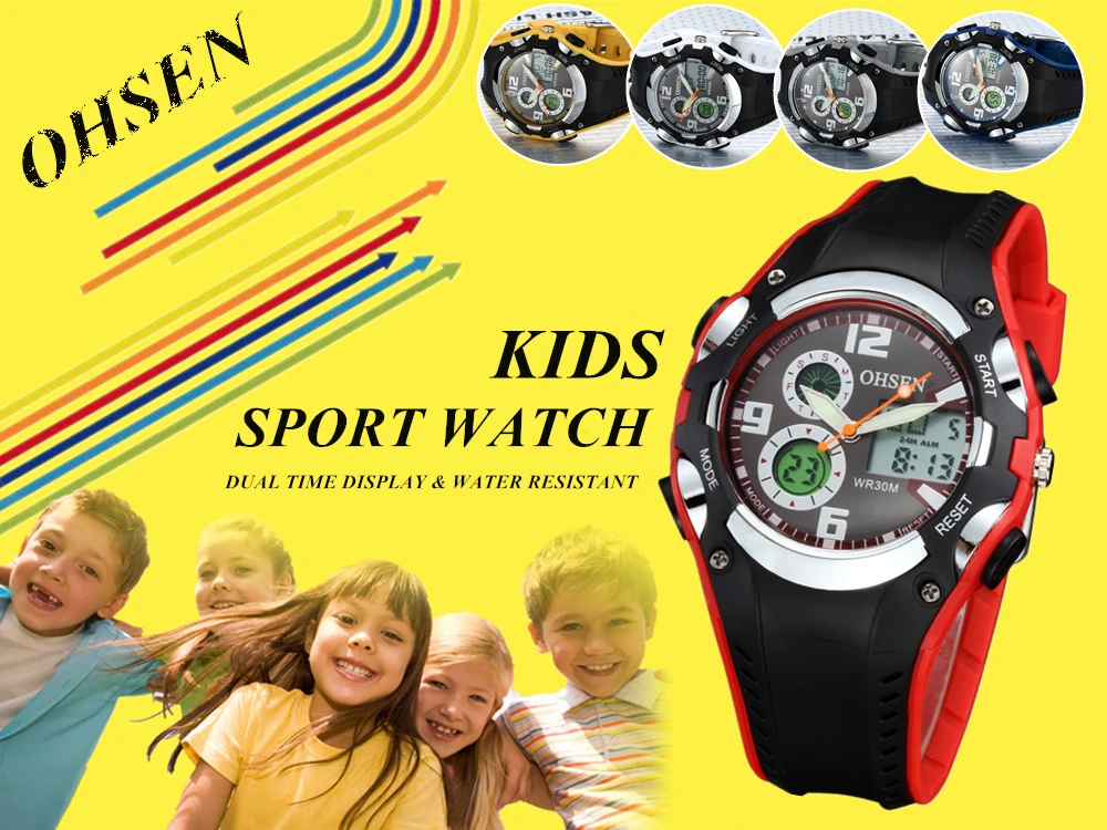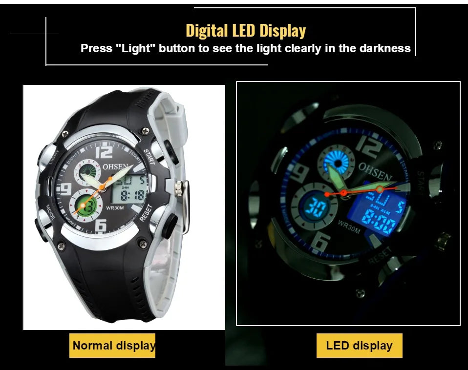 OHSEN Fashion Children Watches Digital LED Analog Watch Boys Girls Quartz Wriwatch Kids Sport Wristwatch Alarm Electronic Clocks
