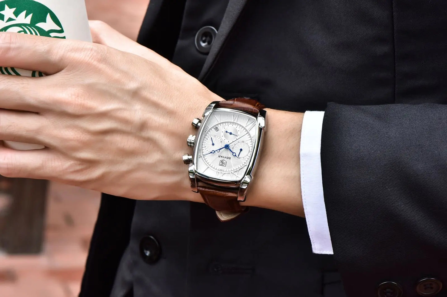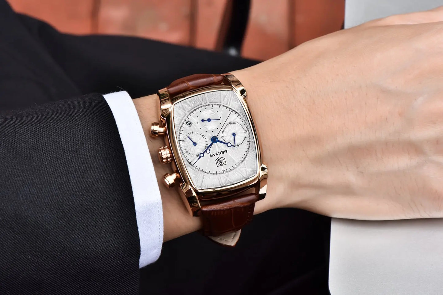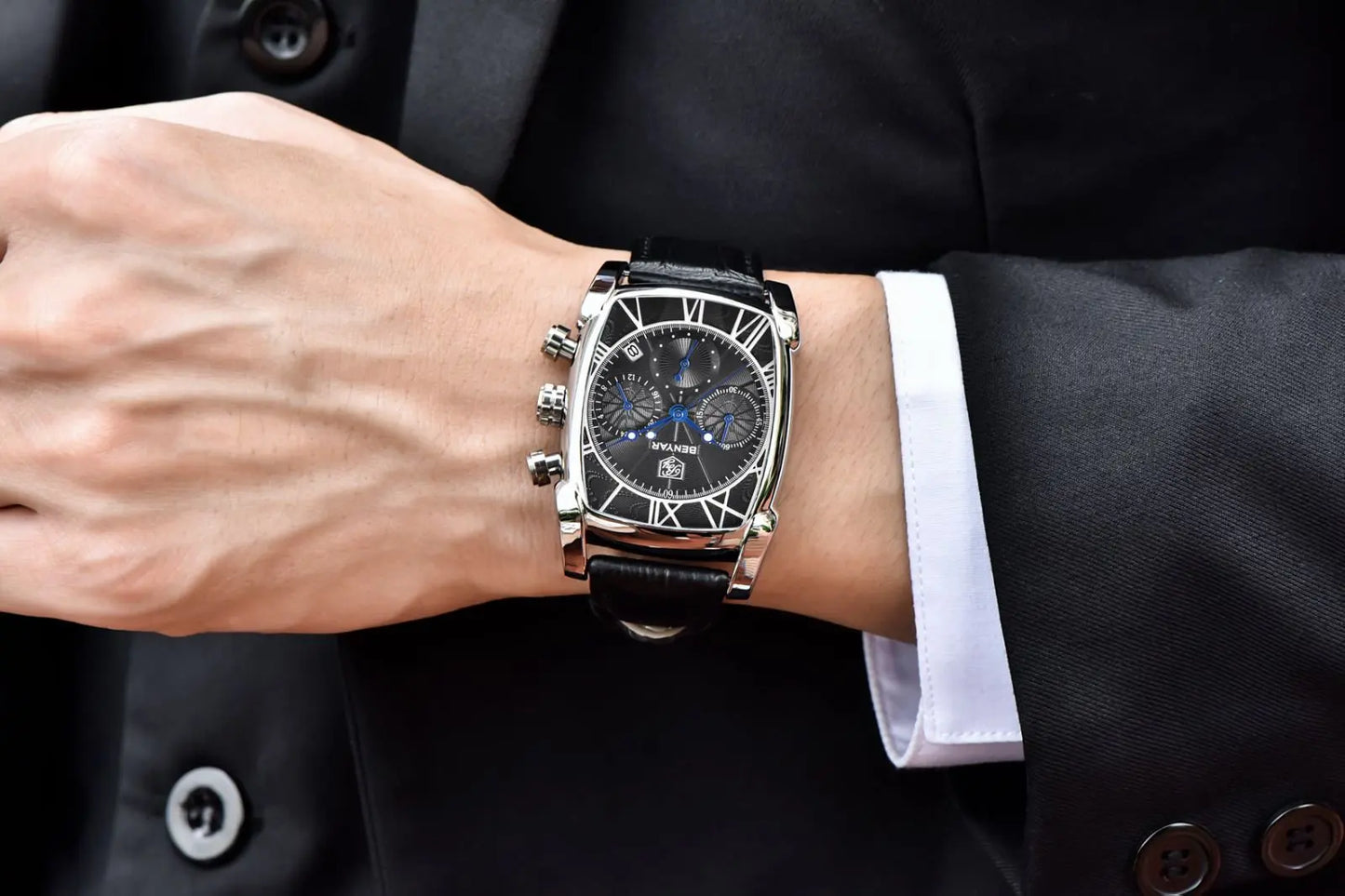 Relogio Masculino Mens Watches Top Luxury Brand BENYAR Chronograph Leather Quartz Watch Men Military Sport Rectangle Wristwatch