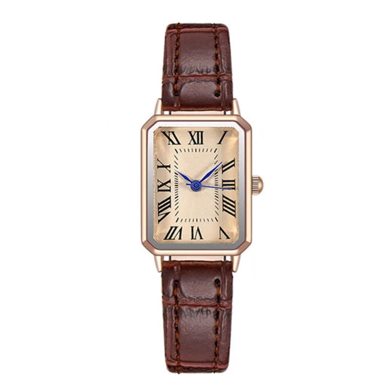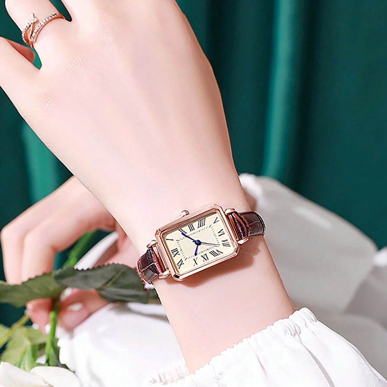 Retro Watches Classic Casual Quartz Dial Leather Strap Band Rectangle Clock Fashionable Wrist Watches for Women