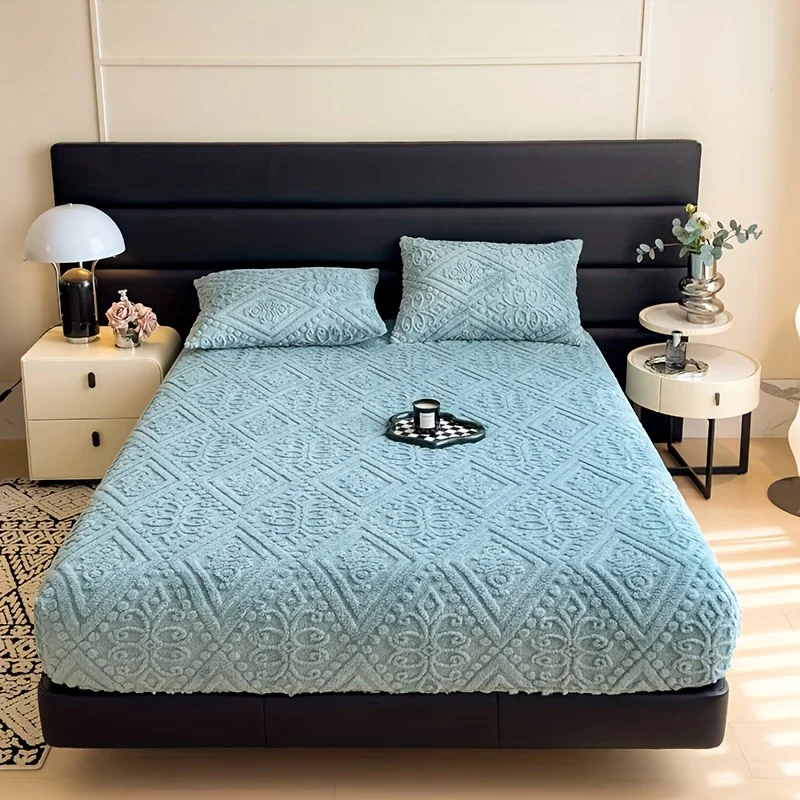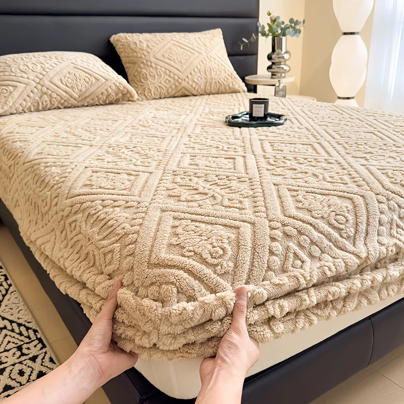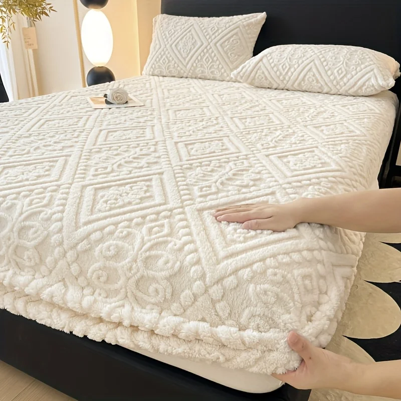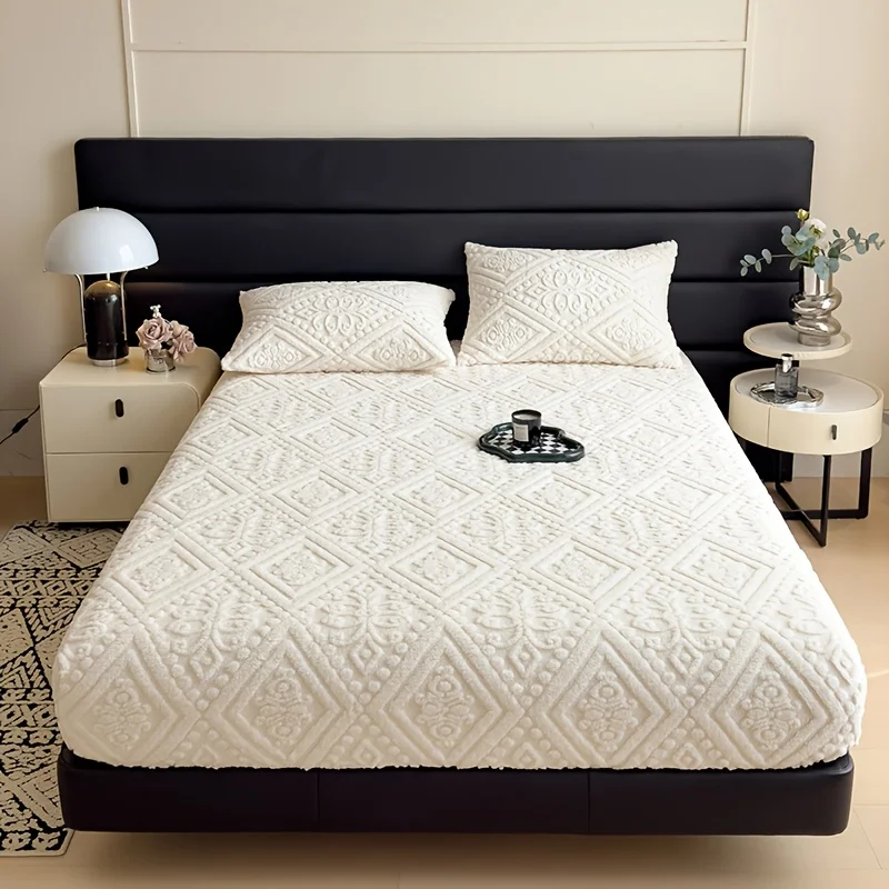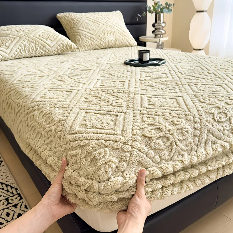 Soft Luxury Bed Cover Plush Bedspread - Thick Winter Fitted Sheet Machine Washable, Deep Pocket Design