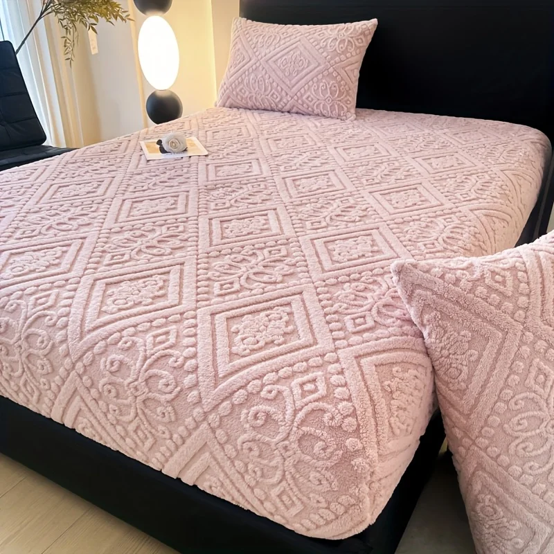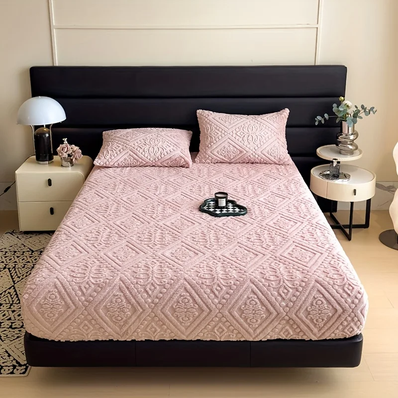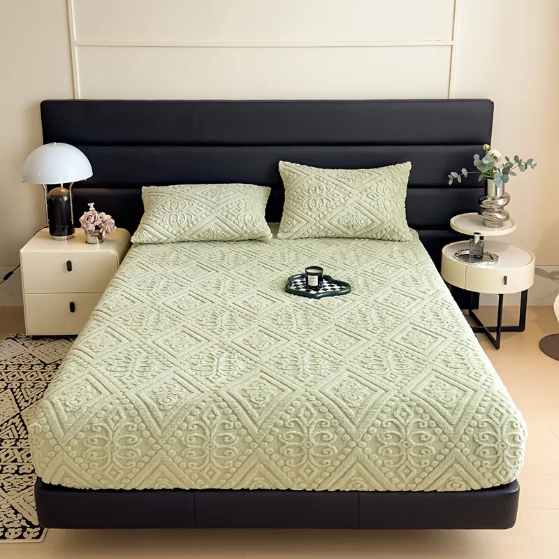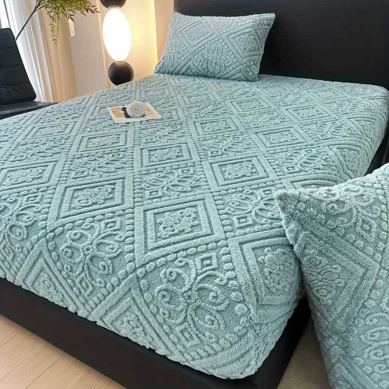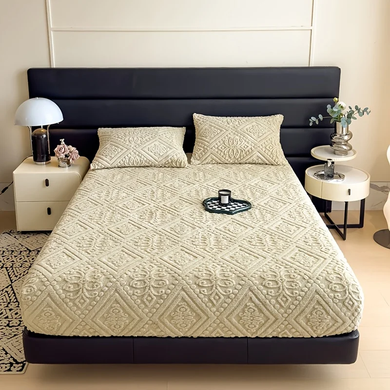Soft Luxury Bed Cover Plush Bedspread - Thick Winter Fitted Sheet Machine Washable, Deep Pocket Design