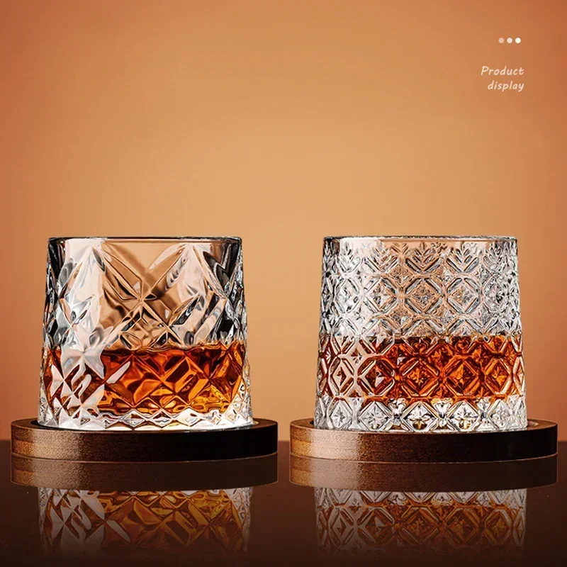 Tumbler Whiskey Glass with Base Crystal Whiskey Glasses Rotating Spinning Wine Brandy Glass Cup Drinkware for Bar Home