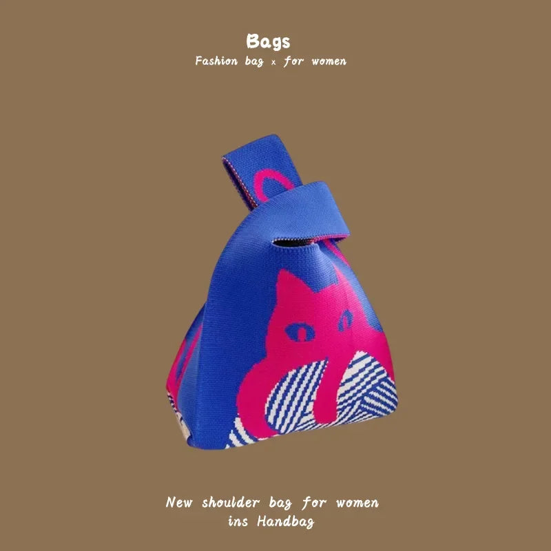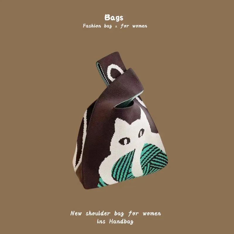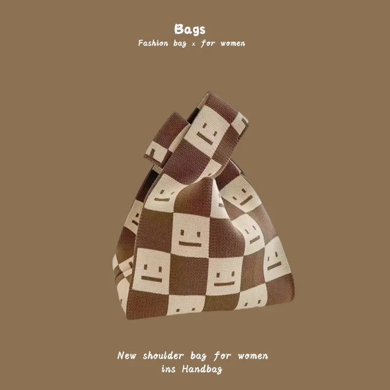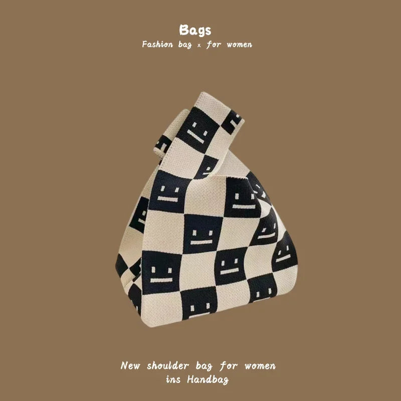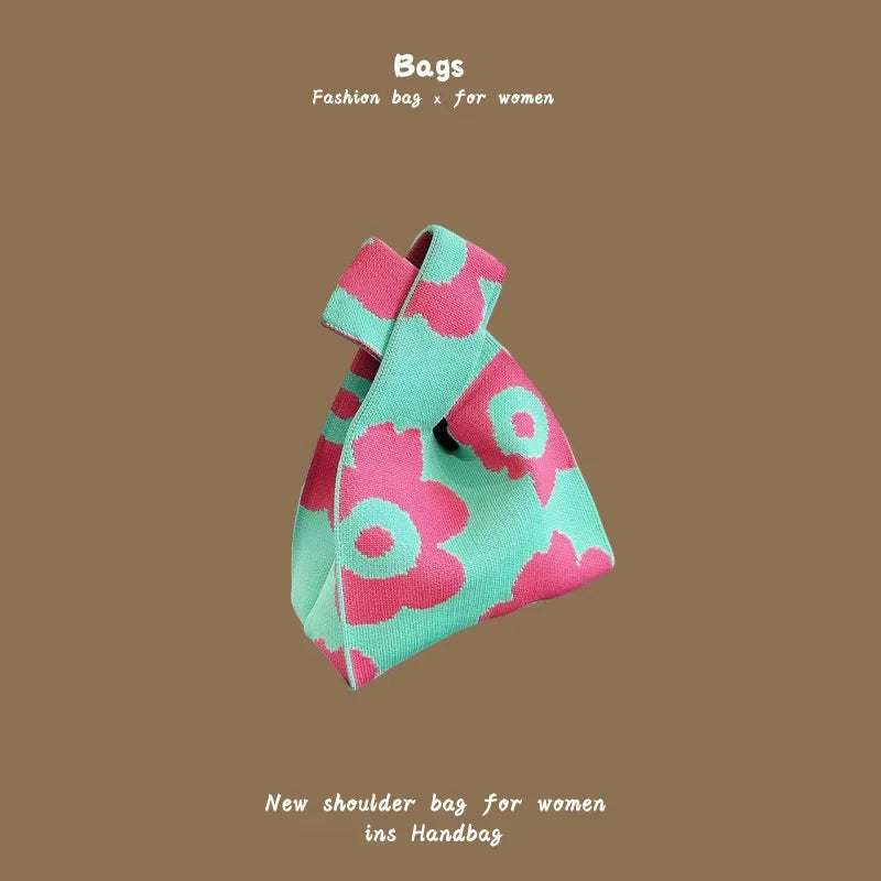 Women Handmade Knitted Small Handbag Casual Wrist Bag Versatile Shopper Mini Tote Bag Student Reusable Shoulder Bag Daily Use