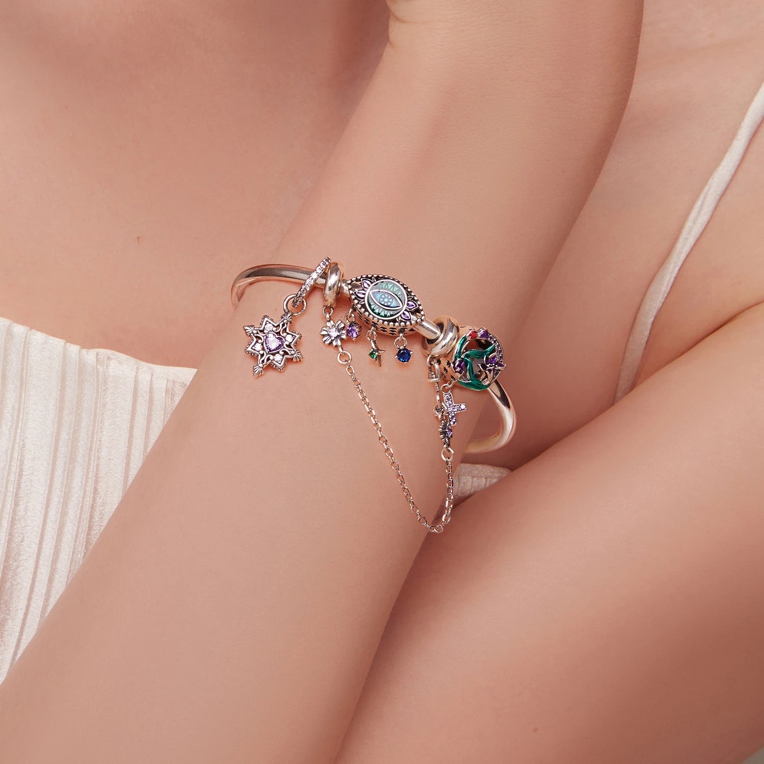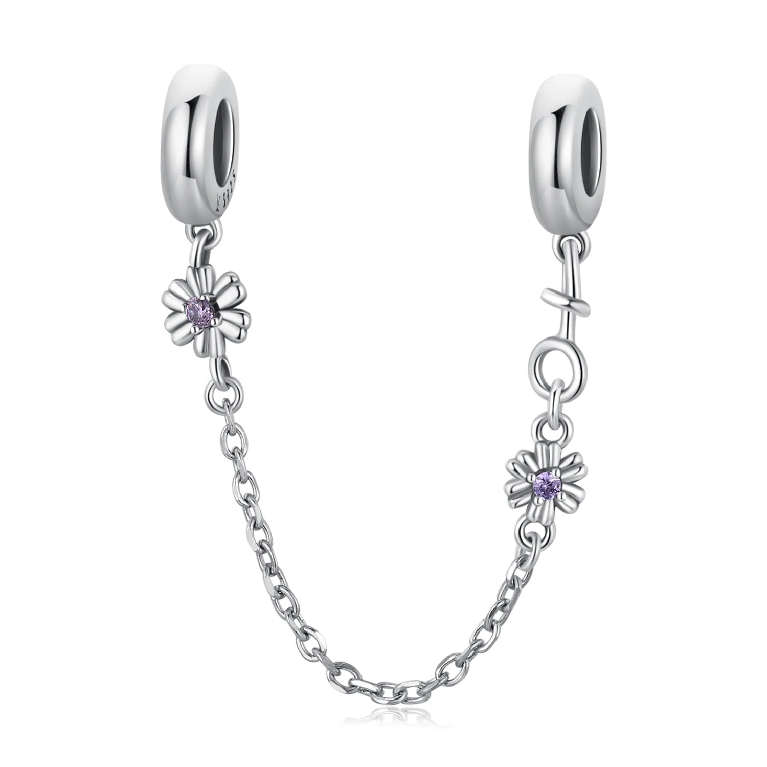 WOSTU 925 Sterling Silver Amimal Safety Chain Heart Key Flower Pendant CZ Charms Stopper Fit Original Bracelet DIY Fine Jewelry